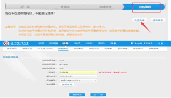 3.申请外语免修