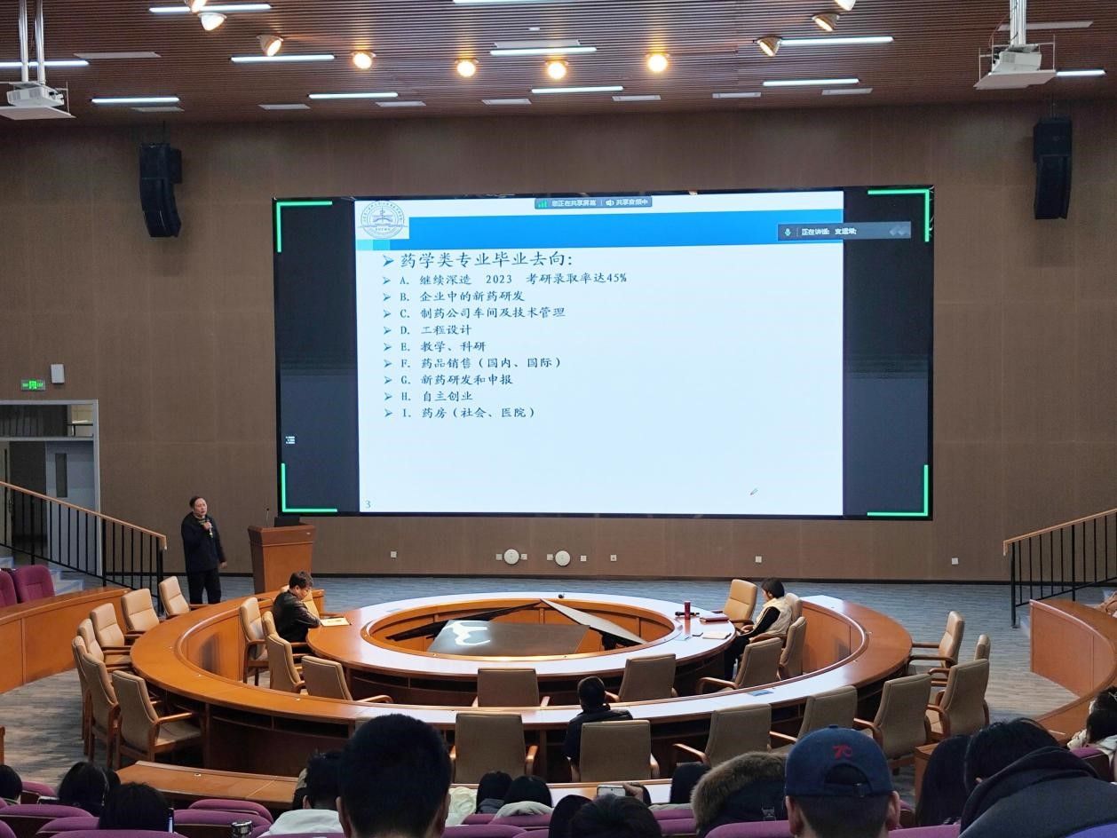 牟艳玲以“相约考研、未来可期”为主题,围绕同学们关心的“为什么要考研”“如何准备考研”“常见问题分析”三个方面给予同学们解疑释惑,鼓励同学们要有“破釜沉舟”的勇气、“坚持不懈”的毅力和“背水一战”的决心。段桂运分析了药学类专业毕业生大致的就业方向,结合自身成长经历,为同学们讲解继续加强专业知识学习、提升专业理论水平的重要意义,激发同学们继续深造的热情,争做应用研究型复合人才。汪海洋以《红色逐梦,自强不息,做药届“未来新星”》为题,从药学发展的前沿趋势、药学领域成功人士的成长经历、药学类学生考研的主要方向和区别三个方面,鼓励同学们志存高远,砥砺前行,为药学发展进步贡献自己的磅礴力量。