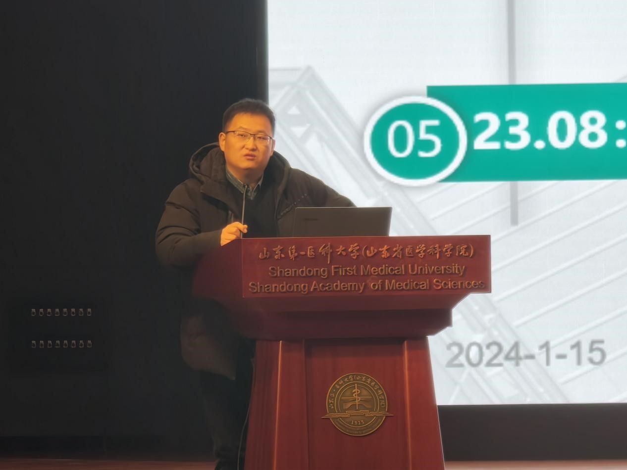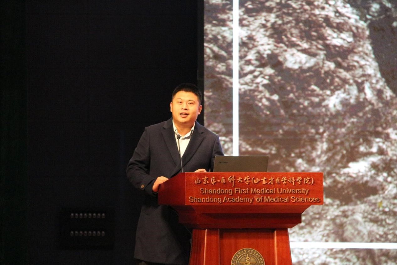 校友郑鹏则提出希望同学们能珍惜同学情、兄弟情,珍惜母校时光、珍惜学习时光。他通过讲述自身的迷茫、坚持、转折、考研经历,告诉同学们在任何困难面前都要坚持,寻找出路。坚持理想与梦想、不随波逐流的同时学会“松弛有度”,照顾好家庭与健康。他希望同学们能够勤奋且努力,但不能以百分百的努力来追求百分百的回报,且希望同学们能够做一个良善的人,永远相信一个爱笑的人运气不会太差。他强调了学历对于人生下限报酬的重要性,以及能力和运气在决定人生上限中的作用,并谈到自己在药检中心的工作经历和对于竞争力的思考,同时也分享了自己在济南市第三人民医院的面试经历和科研工作的机会。他勉励同学们做树园中的土壤,只要有一粒种子,即使被人踩到泥土中间,也能长成参天大树,给后人遮阳,实现自己的人生价值。