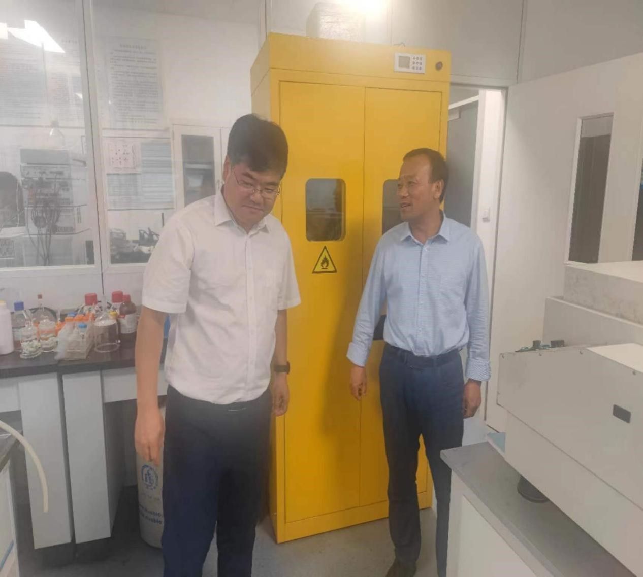 工作组一行对实验室消防、试剂溶液存储、实验室废液处理、易制毒易制爆管理等关键部位和敏感区域逐一进行检查,要求对存在问题建立台账限期整改,对前期检查整改不到位的实验室给予严肃批评。