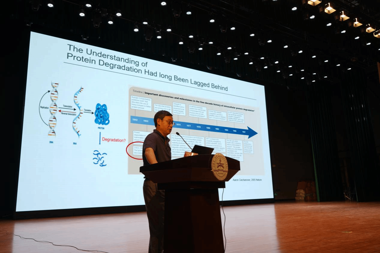 随后,国家级领军人才解维林教授为同学们作题为“欢迎未来的药学科学家”报告。报告中,解维林教授详细介绍了靶向蛋白质的相关内容,延展出TPD领域新发展的降解标签、溶酶体靶向嵌合体、PROTAC等前沿技术,整场报告精彩纷呈、内容丰富,使在场所有新生同学不仅加深了对靶向蛋白质的深刻认识,拓展了学术视野,开辟了科研思路,也为今后投身科研埋下一颗种子。会议最后,解教授还鼓励同学们要珍惜时光、努力学习、肩负起新时代青年的科研使命,并欢迎大家加入学术科研大家庭,为校(院)创建“双一流”大学做出自己的贡献。