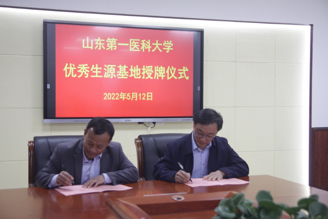 随后,史仁玖与两位校长共同为“山东第一医科大学(山东省医学科学院)优秀生源基地”揭牌。