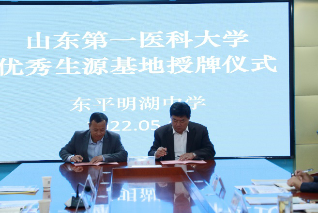 5月12日,山东第一医科大学优秀生源基地授牌仪式在东平县第一中学和明湖中学举行,东平一中校长李建业、明湖中学校长殷复科和药学院党委书记史仁玖、副院长周延萌、党委副书记宋洪涛参加了授牌仪式。