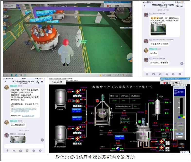 作为实践类课程,认识实习中实践教学是不可或缺的一部分。为最大限度地还原实践操作,学院采用北京欧倍尔软件技术开发有限公司提供的技术平台,以线上仿真实习的形式实现实际操作的练习。本次认识实习选用水杨酸、阿司匹林生产线,通过虚拟仿真技术模拟了生产全过程。平台展示了清晰的工艺路线、典型的生产设备、逼真的车间环境和详细的操作步骤,很好地配合了理论教学,实现了较好的学习效果。