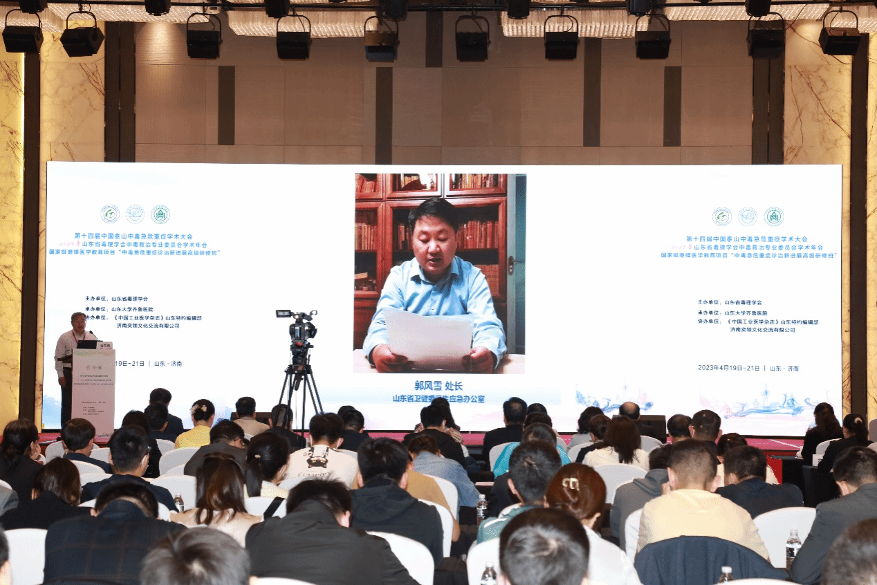 第十四届中国泰山中毒急危重症高峰论坛暨2023年山东省毒理学会中毒救治专业委员会学术年会于2023年4月19-21日在济南召开。本次大会由山东省毒理学会、山东省毒理学会中毒救治专业委员会主办,山东大学齐鲁医院、《中国工业医学杂志》山东特约编辑部承办。国家级继续医学教育项目[2023.12.01054(国)]“中毒急危重症诊治新进展高级研修班”同期举办。本次大会主题是“疫情过后中毒急危重症临床现况及救治策略”,内容涵盖中毒急危重症及相关学科的最新临床与基础研究进展、突发中毒事件应急救援、中毒急危重症科研思维、中毒急危重症护理与康复、中毒救治新技术现场展示等,共有来自全国各地的400余名专家学者参会。