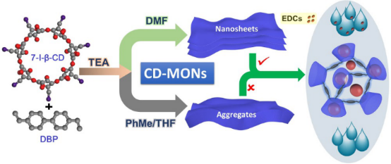 环糊精单体诱导制备二维微孔有机网络纳米片用于高效去除酚类污染物示意图