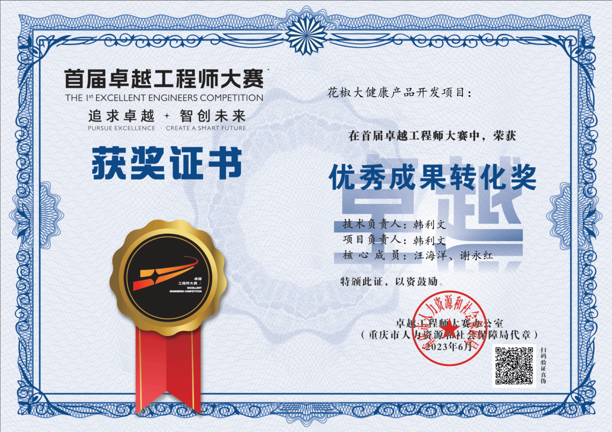 近日,重庆市“首届卓越工程师”大赛经过初赛、半决赛、决赛,在重庆北碚落下帷幕。我校云顶集团韩利文博士主持的“青花椒大健康产品开发”项目在首届卓越工程师大赛中荣获“优秀成果转化奖”。