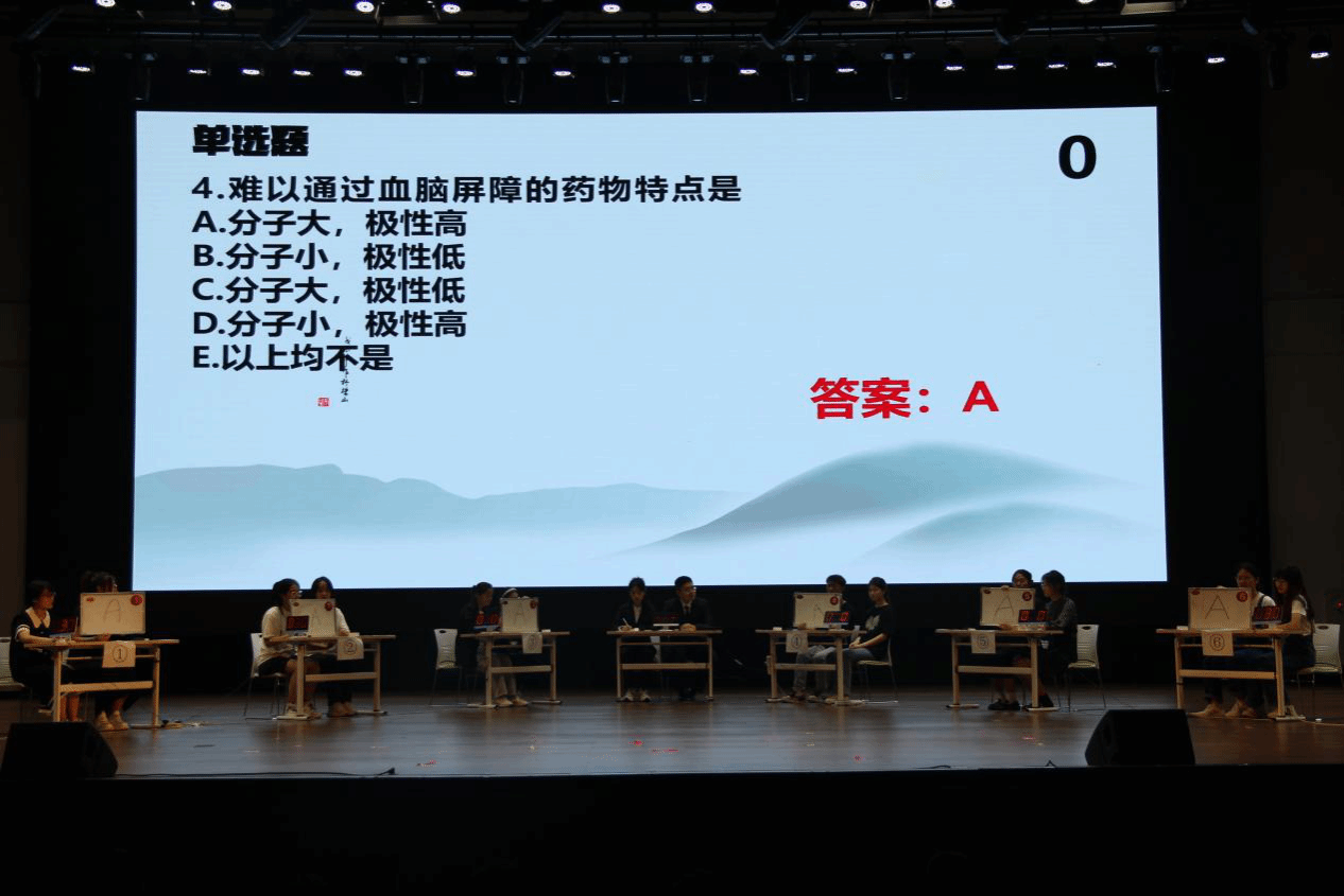 短暂休息后,主持人宣读比赛结果,最终一等奖由“答的都队”斩获,“药竞先锋队”、“”酸菜鱼队”荣获二等奖,其余的三支代表队也将三等奖收入囊中。