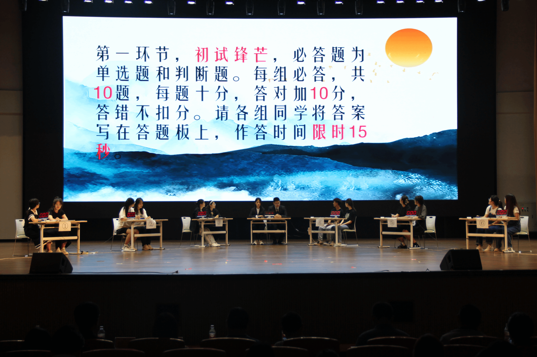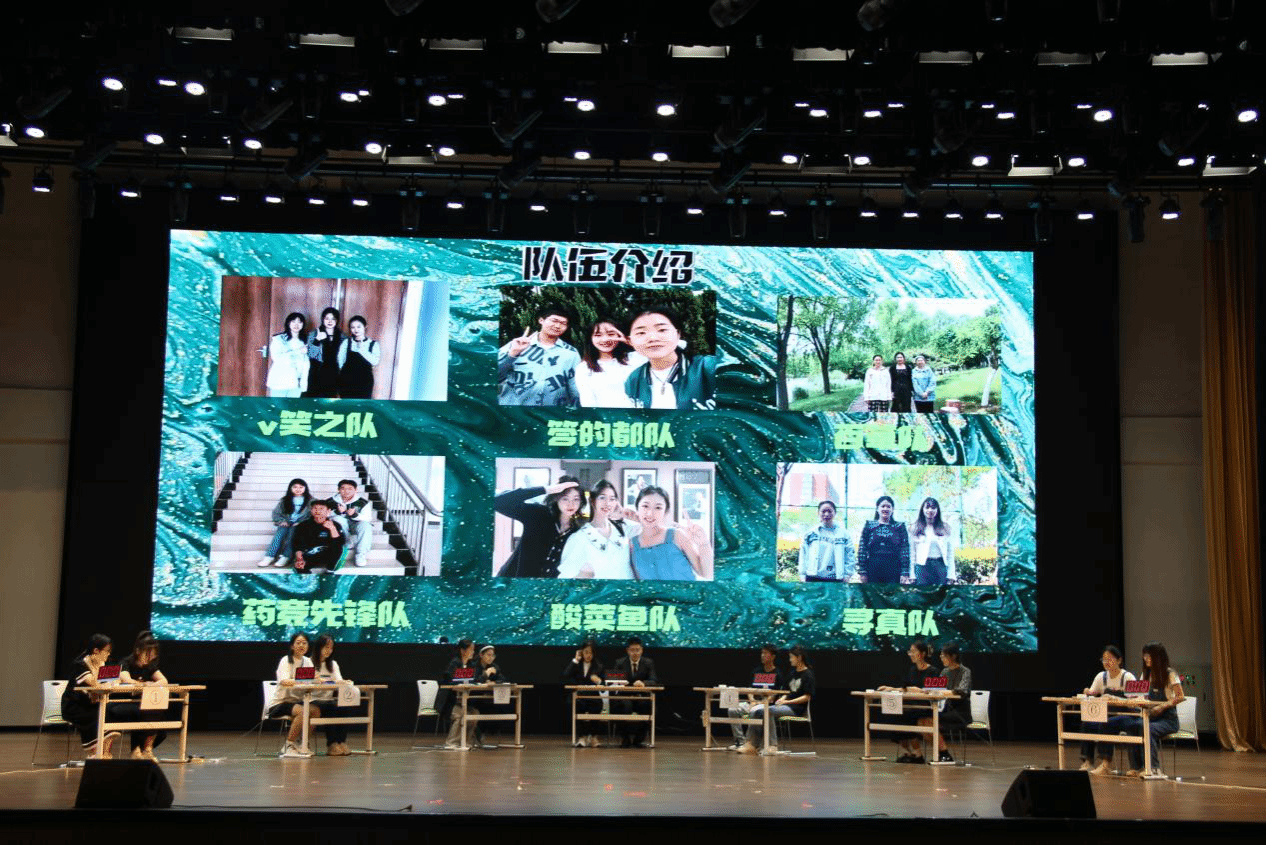 此次竞赛共有六支来自不同学院自由组合而成的代表队参加,分别是“V笑之队”、“答的都队”、“百草队”、“药竞先锋队”、“酸菜鱼队”、“寻真队”。本次竞赛以传承医药文化为主题,共分为“初试锋芒”、“先发制人”、“含沙射影”、“险象环生”四个环节。