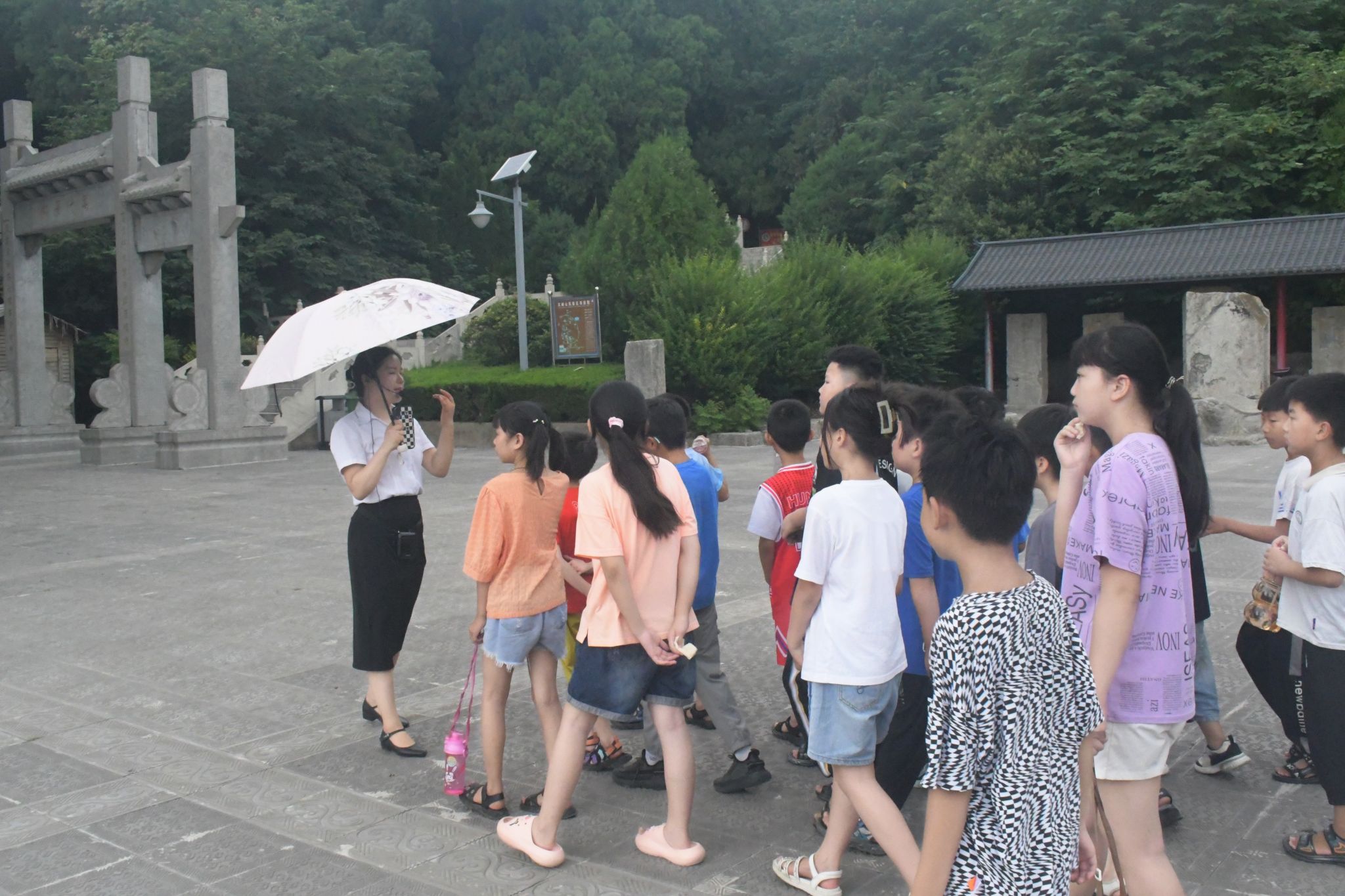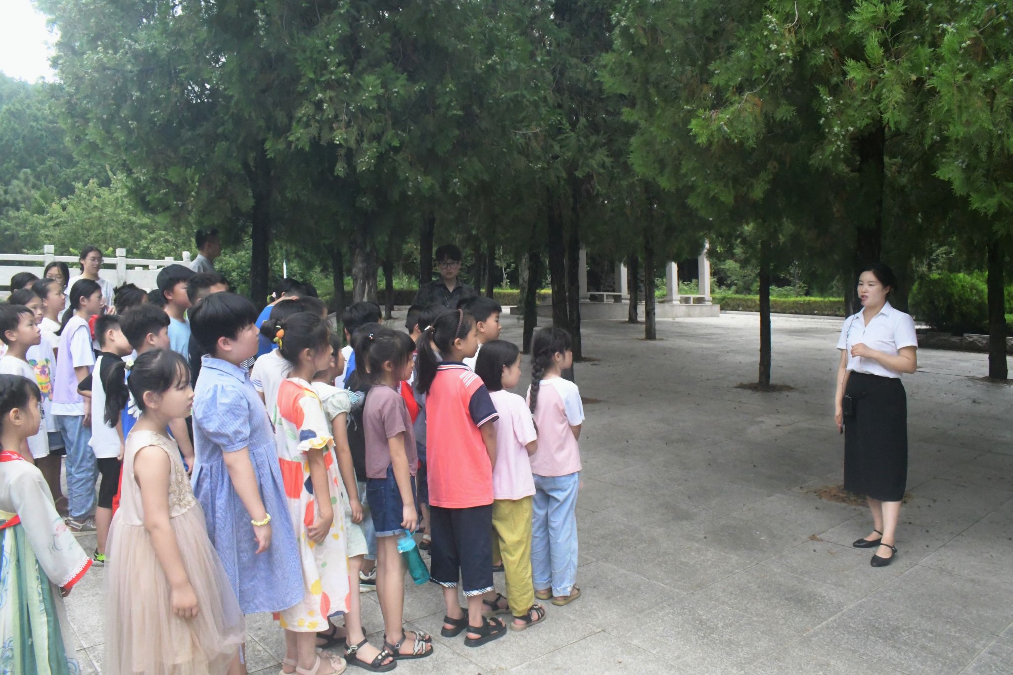 在社会实践服务团的带领下,青山社区暑期托管班一二班的同学们赴鲁南革命历史纪念馆进行参观。到达鲁南抗战展览馆后,讲解员为大家讲述了一个又一个催人泪下、可歌可泣的沂蒙革命英雄故事。儿童们肃立在纪念碑前,沉浸在严肃而凝重的氛围中,瞻仰烈士纪念碑,向革命烈士鞠躬默哀,缅怀他们的丰功伟绩,敬仰他们的奉献精神。红色教育承载着革命先辈的崇高思想和坚定信念,通过红色基地参观,加深了孩子们的爱国主义情怀,将不断激励他们认真学习、苦练本领,自立自强,为中华民族伟大复兴而不断努力奋斗。