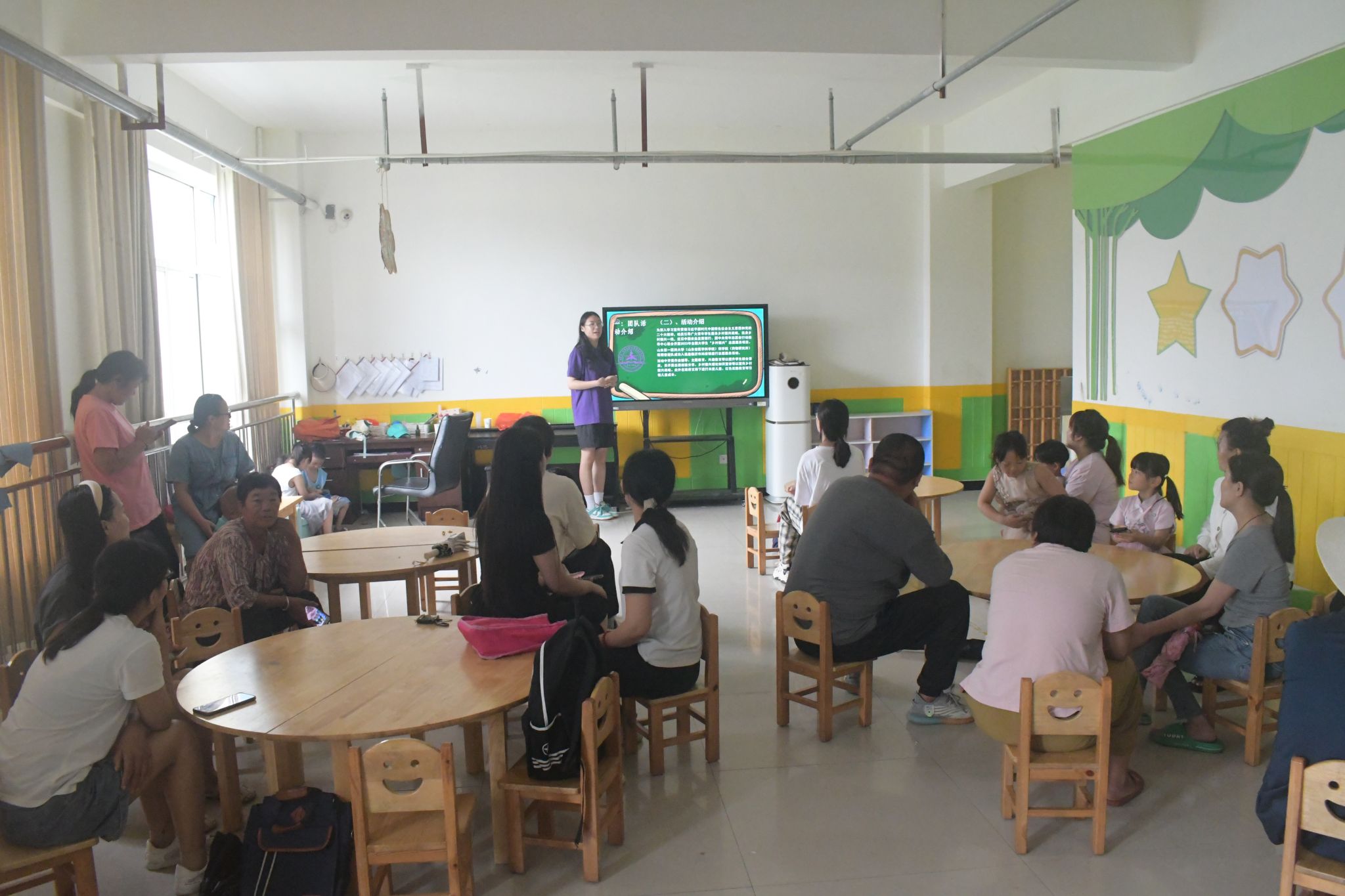 7月29日上午,云顶集团社会实践服务团在青山社区各班举行家长会。会议中,实践队员们向家长们进行了团队以及活动开展的总结汇报,反馈了小朋友们的学习进度以及课堂表现,强调了家庭教育在孩子成长中的举足轻重作用,同时再次强调了暑期安全教育。家长们纷纷向队员们的付出表示感谢与认可,欢迎队员们随时回来看看。