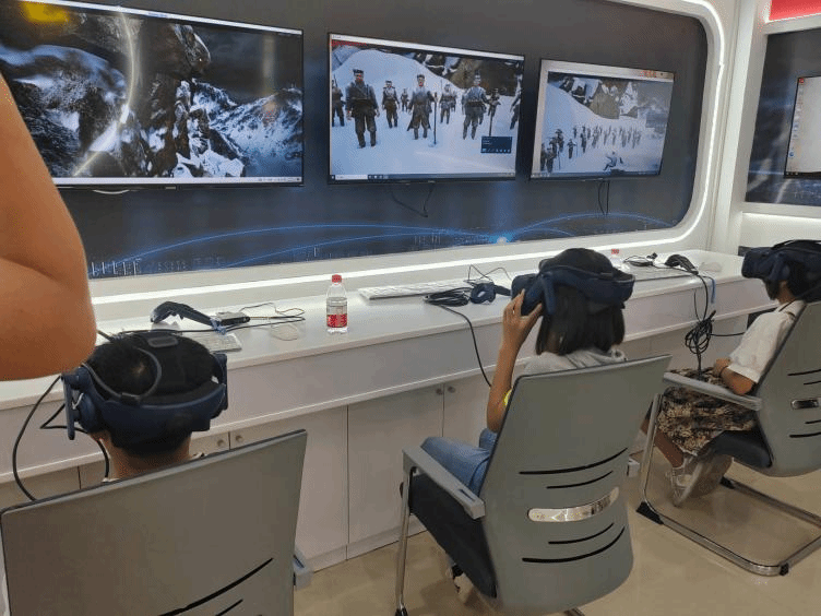 “科技立则民族立,科技强则国家强。”在实践队员们的带领下,青山社区暑期托管班四班的儿童们来到尚岩镇研学实践中心——文峰村党群服务中心。在这里,科技人员利用VR虚拟现实技术制作方式,仿真建造了一座虚拟党建展馆,党建展馆大屏幕不断回顾着中国共产党成立至今发生的重大事件,儿童们带上VR眼镜“走”进展馆,身临其境地参观学习。同时,“空中成像”、“电影原理”和“听话的小球”等馆内展览也深深吸引着小朋友们的注意力。儿童们饶有兴趣地观摩欣赏,在感叹科技发达之余切身感受着建党百年的光辉历程,在参观展览之际体验着科技发展的日新月异。