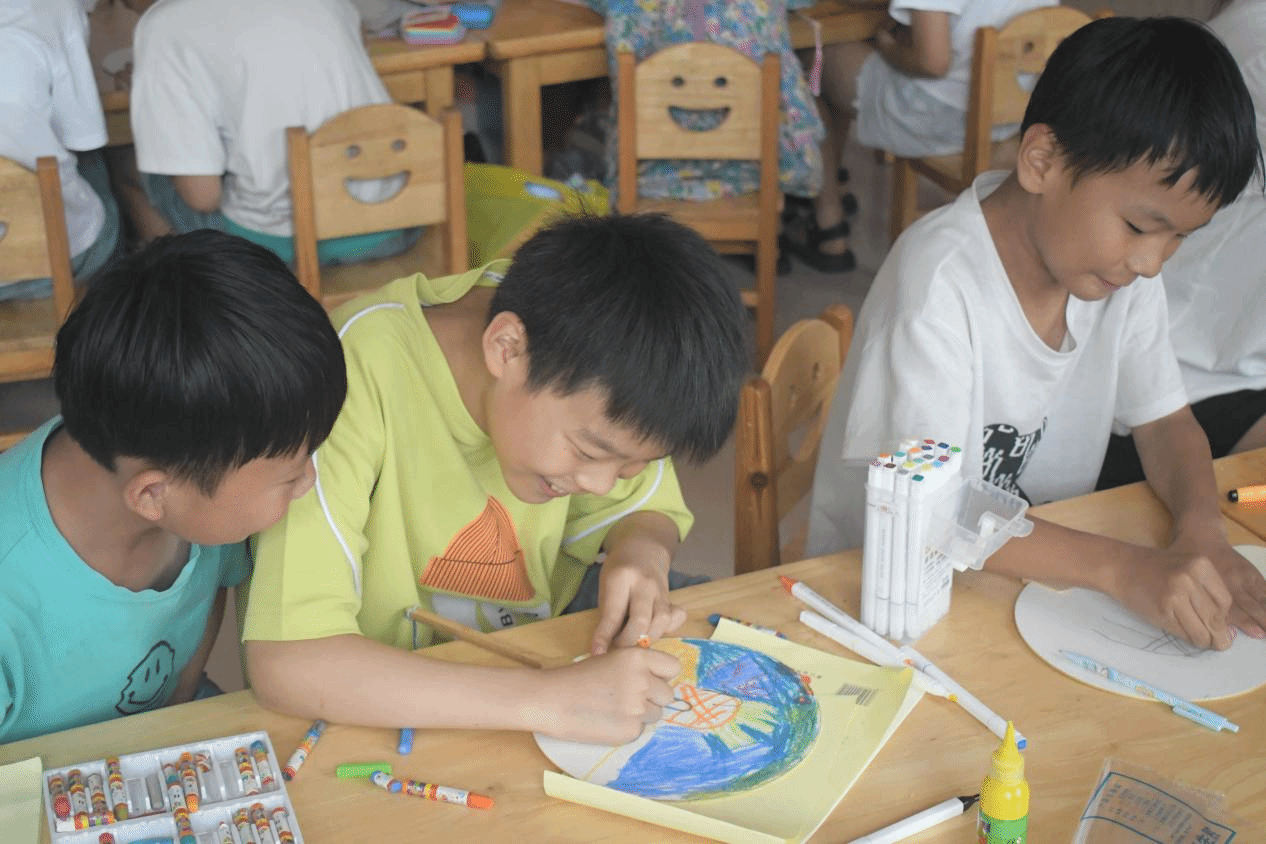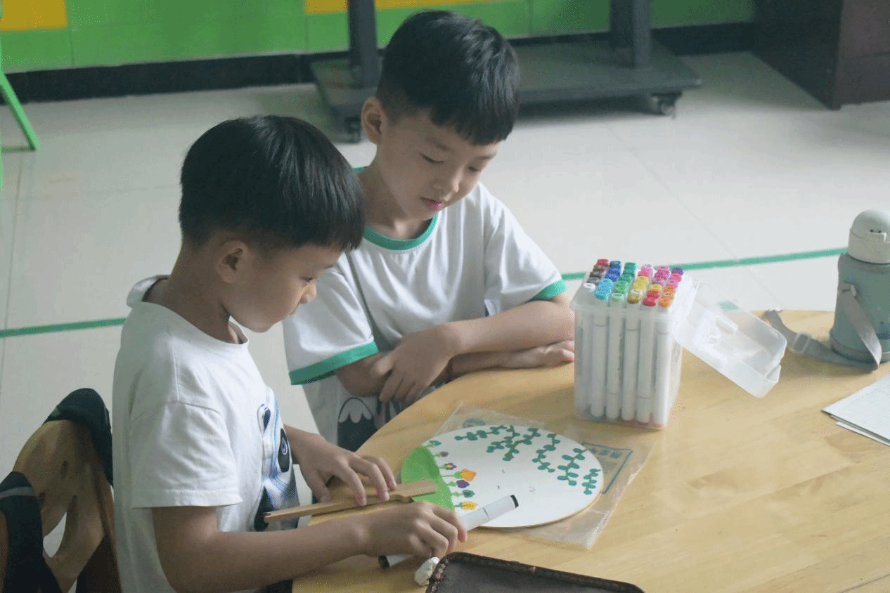 艺术教育可以教会孩子们感知美、鉴赏美、创作美,是素质教育的重要组成部分。26日下午,实践队员为小朋友们开展“扇面绘画”艺术素养课堂。实践队员首先从团扇的起源、形制、欣赏、创作等方面进行讲解,小朋友们纷纷竖起耳朵认真倾听,切身感受着艺术魅力。他们发挥自己独特的想象力,绘制出多姿多彩的美术作品,向队员们展现了童趣十足的斑斓世界。一下午的艺术素养课,让小朋友们实现童心与美术的碰撞,在艺术的海洋里快乐地畅游。
