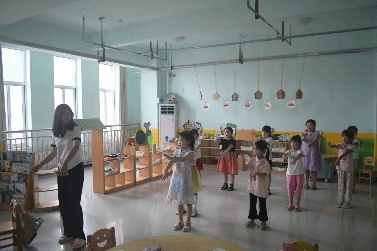 26日上午,实践队员带领小朋友们排练舞蹈、歌曲、诗朗诵等节目,为假期文艺汇演提前做好排练。小朋友们有序地排列队伍,跟随队员们的引领,细致地分解舞蹈动作、翩翩蝶舞;小朋友们大声欢快地歌唱《勇气大爆发》、《稻香》等流行歌曲,清脆爽朗的童声久久萦绕在教室上空;在队员们的带领下,小朋友们铿锵有力地朗读《少年中国说》,嘹亮的嗓音诵出的是祖国和民族最富蓬勃朝气的希望与力量。小朋友们在排练中不仅锻炼了团结协作能力,还有力提升了艺术涵养、陶冶了艺术情操。