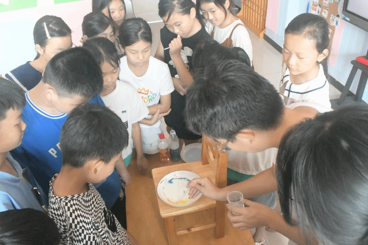探科学浩瀚沧溟,施美育一方沃土。小朋友们在科学的世界中徜徉遨游,激发了他们对于科学的好奇心和求知欲;在声乐的课堂里笙歌曼舞,切身体验到了音韵和舞姿的美妙;在艺术的殿堂中临摹巧绘,培育着他们的艺术素养和实践能力。接下来,队员们将继续投身于社会实践,踔厉奋发、全面锻炼,为乡村振兴宏伟蓝图奉献青春力量。