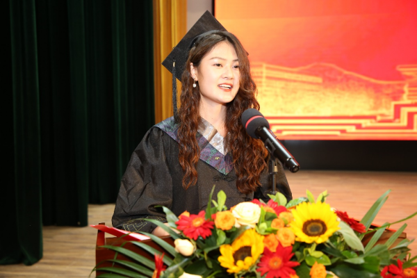教师代表,中药学系赵雪梅教授发言,她勉励同学们以微笑面对困难、以信心面对未来、以责任面对社会、以理解和宽容面对责难,希望同学们牢记“跬步千里 止于至善”的山一大校训,勇于登攀,到达最美的人生巅峰。随后,省级优秀毕业生代表张文杰发言,她回忆了大学四年的点点滴滴,感谢母校和老师的教育和培养,立志在今后的学习工作中做有智慧、有激情的人,做胸怀大智、脚踏实地的人,做有责任、敢担当的人,做不畏艰险、追求卓越的人。在校生代表、药学院第21届学生会主席吴振业代表在校生发言,他感谢学长学姐们对在校生的关心和帮助,为在校生树立了良好的榜样,并祝愿他们乘势而上、顺势而为,追求更有高度、更有境界、更有品位的人生。