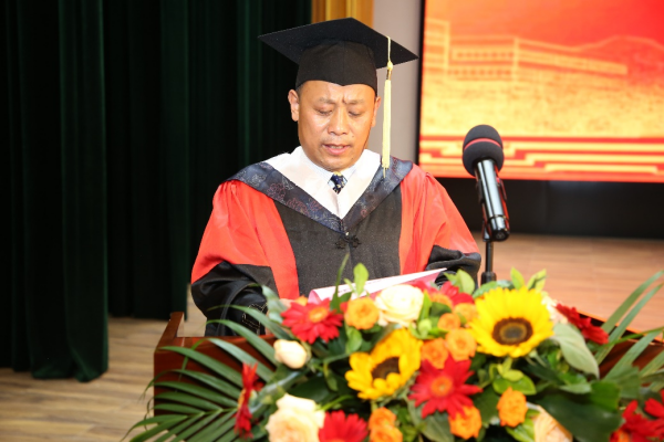 汪海洋在主持毕业典礼时,希望同学们坚定信念、秉持操守,真正做到爱党爱国、勇担重任,自强不息、知行合一,勇于探索、勇于创新,做志存高远、爱校荣校的山一大人!祝愿同学们梦想成真、事业有成、前程似锦!