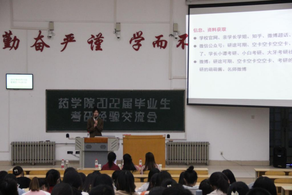 本次考研经验交流会是药学院开展“青春的榜样”——2022年优秀学生先进事迹宣讲活动之一。药学院以立德树人为根本任务,继续坚持学风建设常抓不懈,充分发挥优秀学生的典型示范作用,积极引导学生认清考研就业形势、做好职业/学业规划、实现人生梦想,全面落实人才培养目标,为校(院)争创“双一流”做出积极贡献。