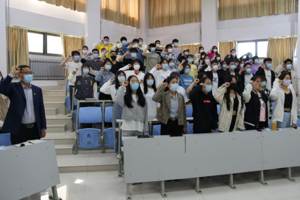 随后,宋洪涛以《共青团的诞生和光辉历程》为题目为同学们讲团课,从中国共产主义青年团的介绍、团旗、团徽的意义,共青团的诞生、发展和辉煌三个发展阶段,五四运动和“一二·九”运动两个历史事件,团的一至十八次代表大会以及“砥砺奋进守初心,青春献礼二十大”五个方面介绍共青团的百年发展历程。他对全院共青团员提出四点期望,一是厚植家国情怀,让爱党爱国成为青春航行的坚定方向;二是涵养静气定力,让勤学笃行成为青春奋进的厚重底色;三是引领风气之先,让崇德向善成为青春激扬的鲜明标签;四是保持锐意进取,让开拓奋进成为青春搏击的磅礴力量。期待着同学们以优异成绩喜迎党的二十大胜利召开。