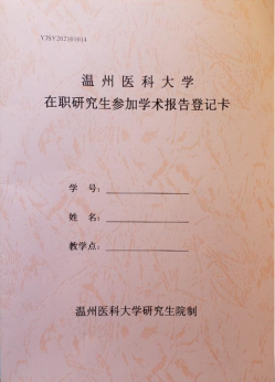 4.各位同学务必合理安排学术活动时间、及时完成,并将《温州医科大学在职研究生参加学术报告登记卡》在提交论文评阅材料时提交至各学院研究生教育管理部门审核。