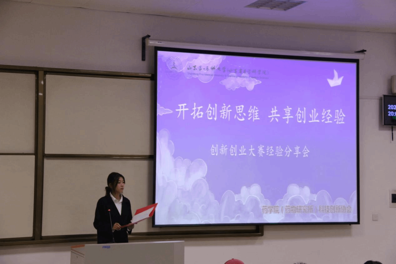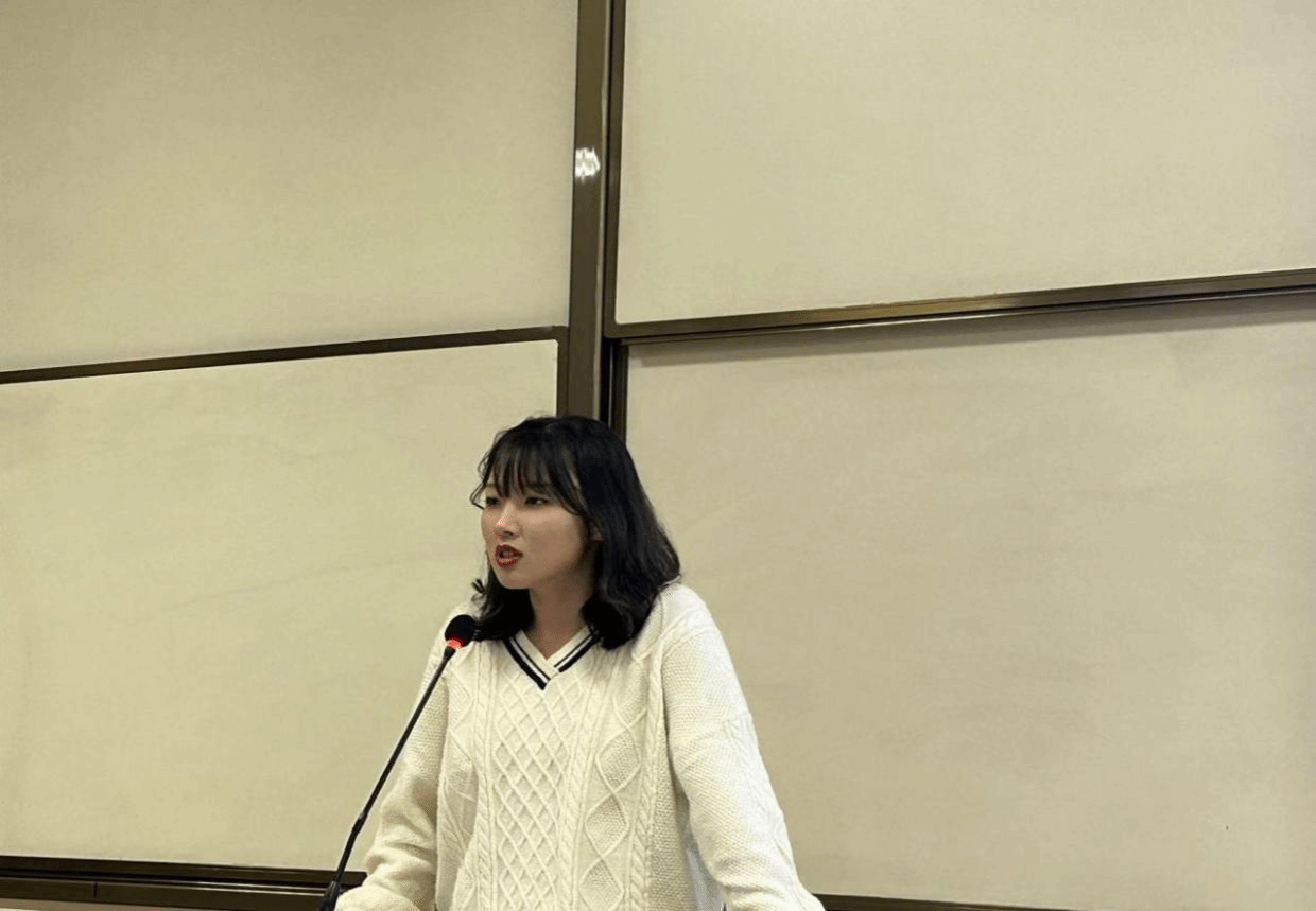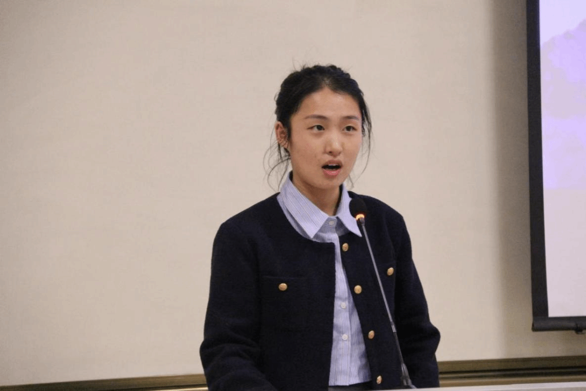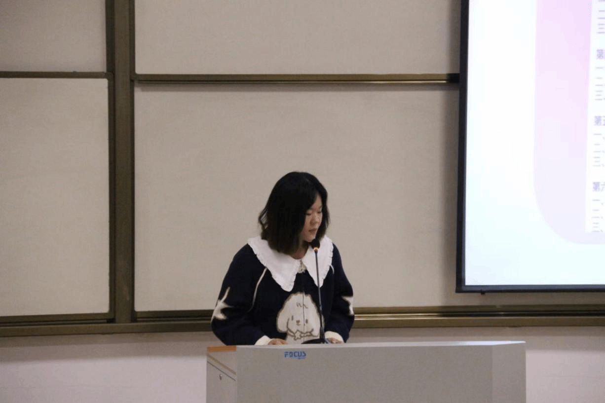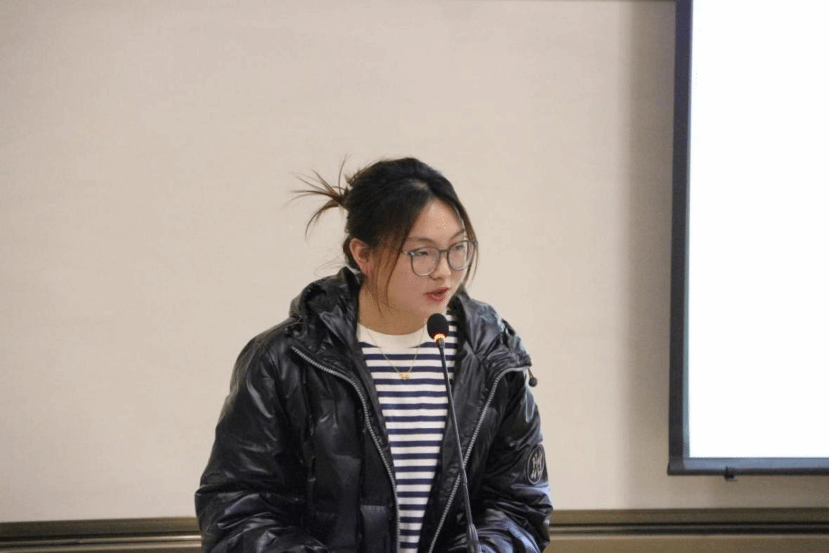 接着登台的是杨雅童同学,她结合个人经历,讲述了自己的竞赛旅程。大一时懵懂无知,大二竞赛中游刃有余、大展身手。她热情地为同学们分享了自己的经验,比如甄选队员、指导老师、专家顾问等,她表示指导老师尤为重要,为同学们指明方向;同时,PPT的制作也要着重关注页数、图片、文字、标识等细节方面,路演答辩时要按照 评审标准。最后,她有的放矢地为同学们提出了一些建议,使同学们受益匪浅!