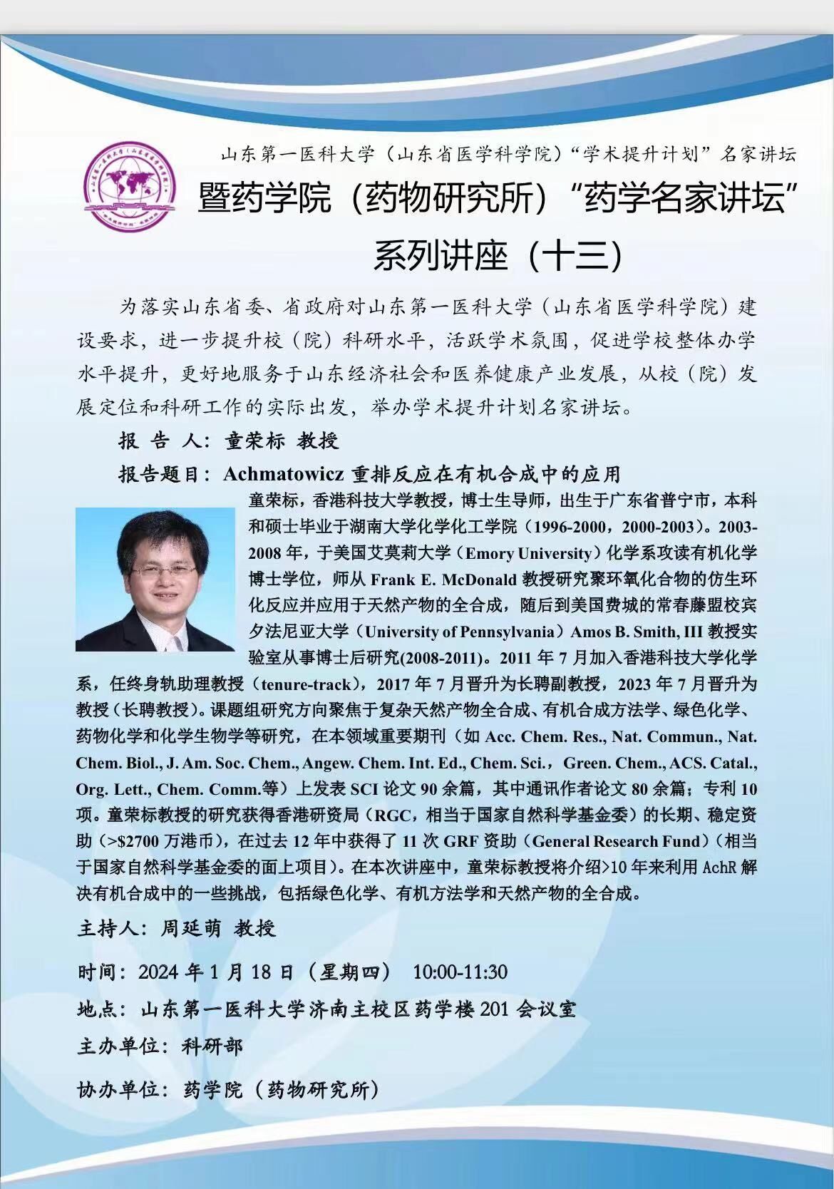 药学院(药物研究所)“药学名家讲坛”系 列讲座(十一)