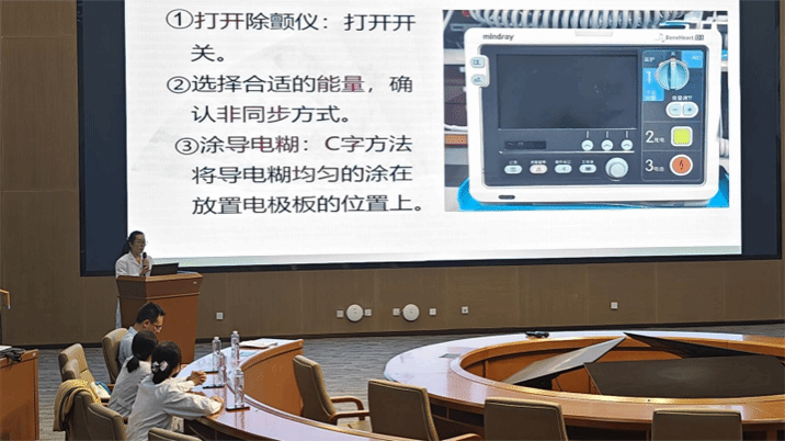 培训初始,第三支部党员代表王绚主任详细讲述了CABD心肺复苏、除颤仪操作流程以及电击治疗内容及病人心跳呼吸停止的表现,包含但不限于意识突然丧失、大动脉搏动消失、脸色苍白或转为紫绀等,便于师生们能及时精准判断患者症状,及时把握黄金抢救期。