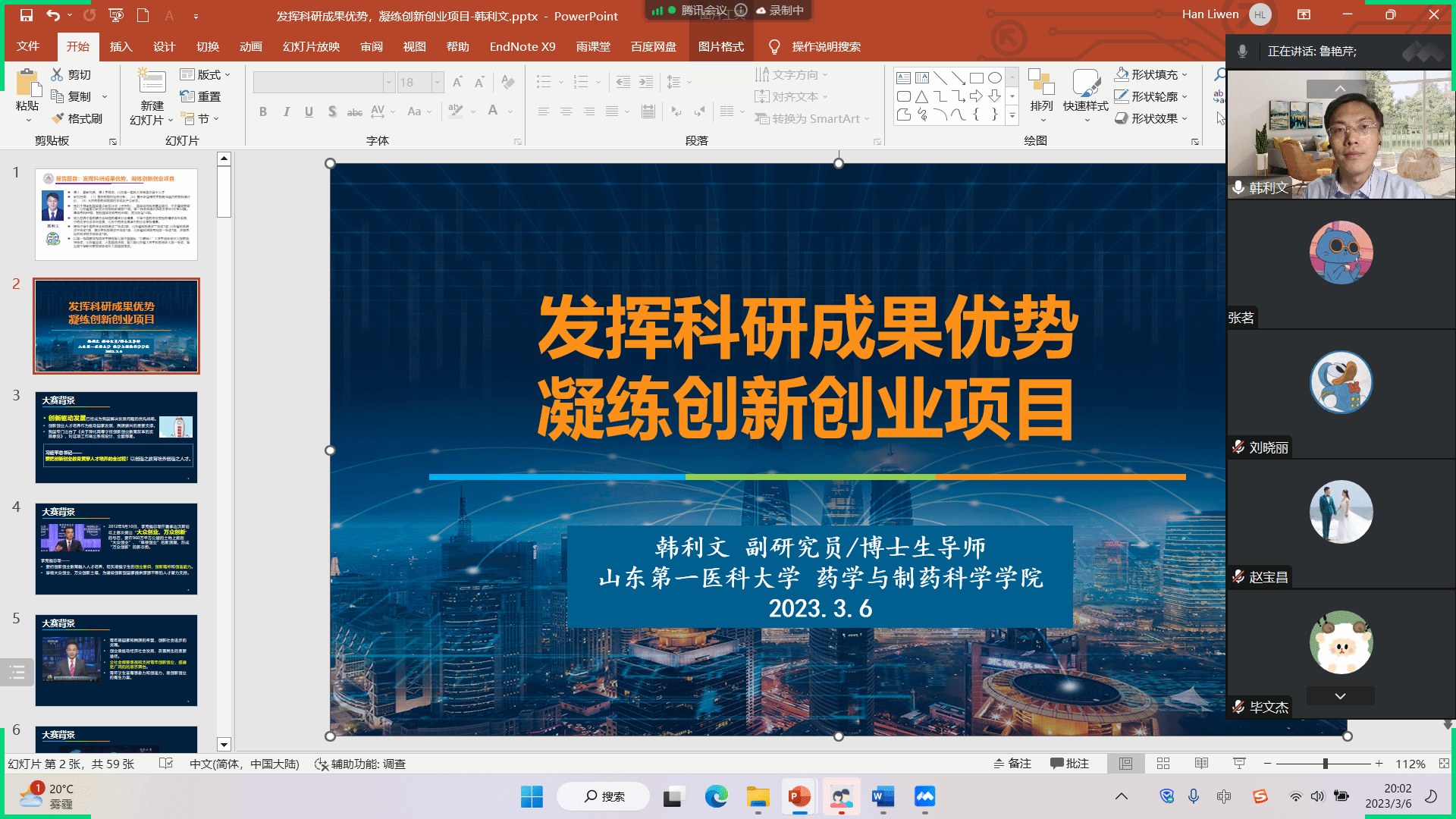 活动前,支部书记杜成林介绍了组织本次领航工程活动的背景。本次活动前期充分调研了5个班级现阶段的学情以及学生面临的实际困难,2021级学生是第九届中国国际“互联网+”大学生创新创业大赛及其他双创赛事的主力;学院举办的创新创业大赛决赛也即将开始。针对这一现状,支部邀请支部组织委员韩利文老师为广大同学举办一次专题辅导报告,对同学们在创新创业方面的问题进行答疑解惑。韩利文以“发挥科研成果优势,凝练创新创业项目”为题,为同学们分享了以互联网+为代表的大学生创新创业大赛设立的背景、评审规则、选题要点、备赛训练、以及带领学生参加比赛的心得感悟。会后,同学们纷纷通过留言及提问的形式,就备赛中遇到的问题和韩老师进行深入的交流。同学们表示,韩老师的报告深入浅出,富有哲理,在细微之处也能带给人激励和感动,很多问题是各类创新创业大赛的共性问题,这样的辅导对于同学们来说,非常及时、很有帮助。