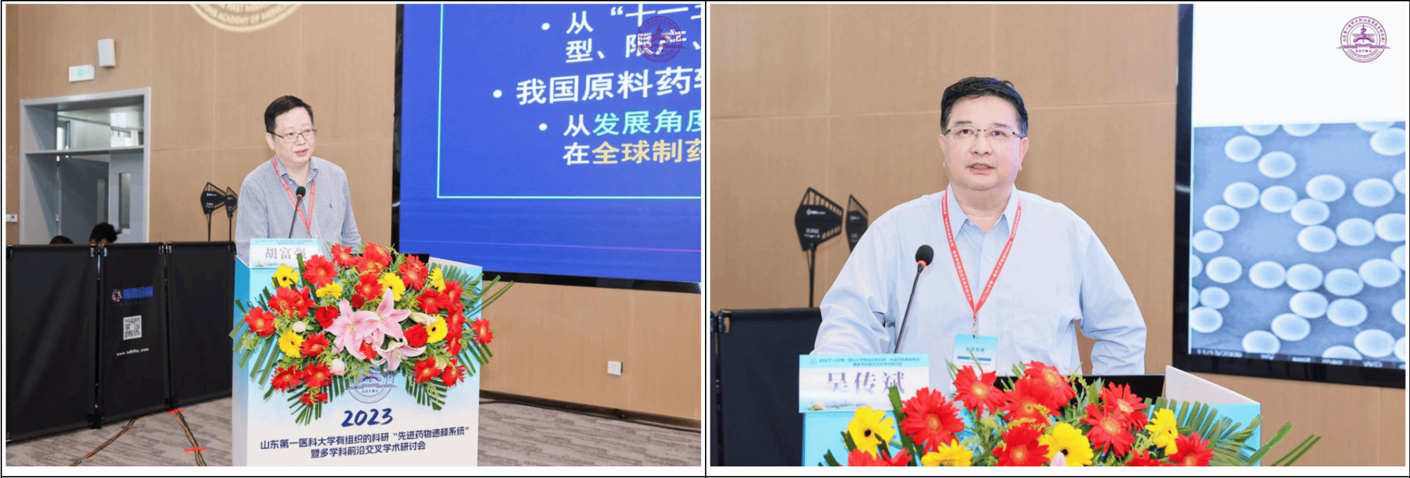 在药物递送研讨论坛上,四川大学孙逊教授、中山大学石明教授、山东大学鞠建华教授、海军军医大学陈万生教授、浙江大学顾臻教授分别作了题为“基于纳米乳的疫苗递送系统的研究”“经肝动脉投递药物治疗肝癌”“微生物抗感染药物的研究开发”“基于药效物质基础的中药品质调控研究”“仿生药物递释系统:创新与转化”的报告。