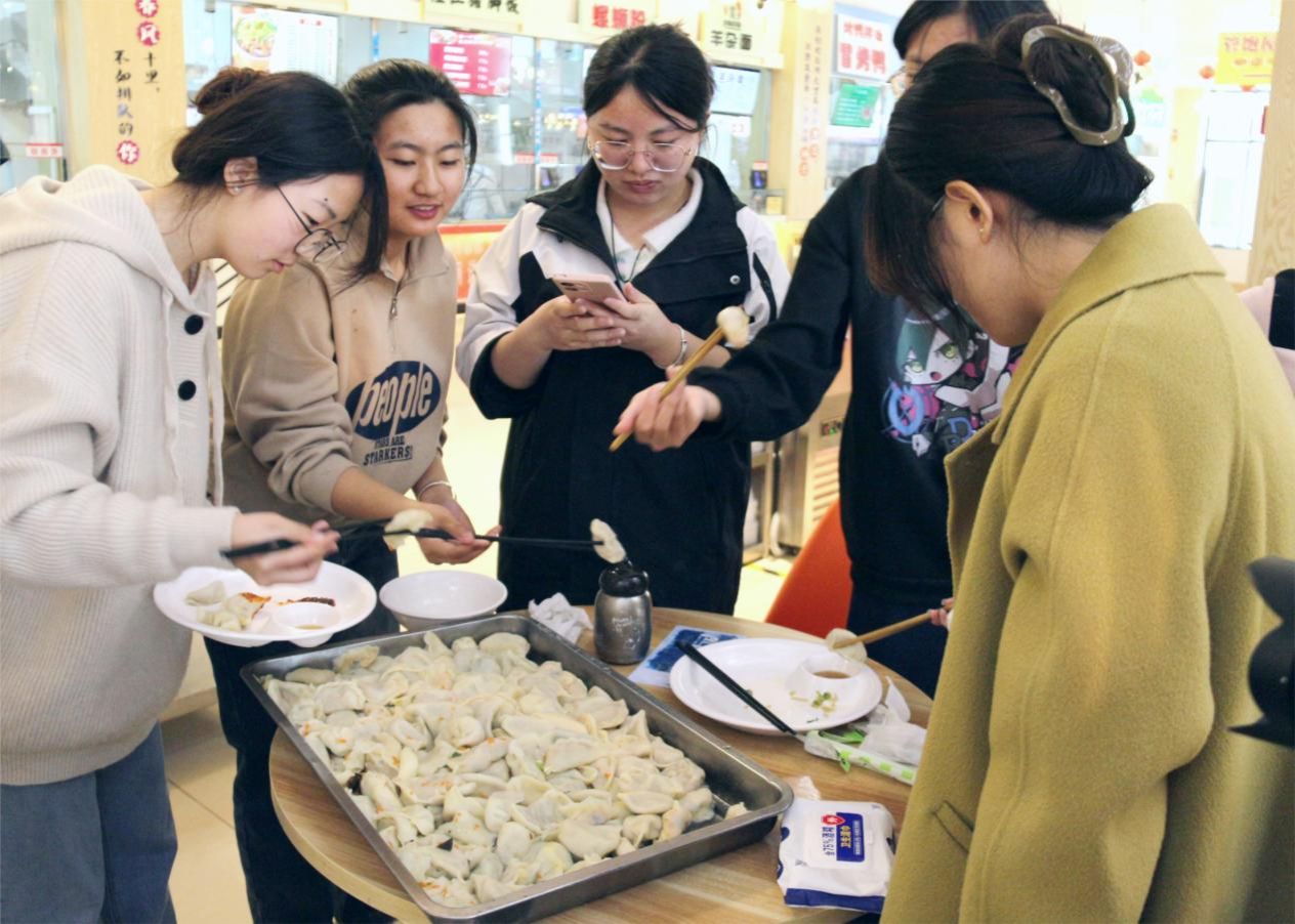 随着一盘盘饺子的完成,活动现场的气氛也愈发热烈,同学们围坐在一起,分享着包饺子的心得和感受,不时传来阵阵欢声笑语。这种团结协作、互相帮助的氛围让在场的每一个人都感受到了家的温馨与和谐。