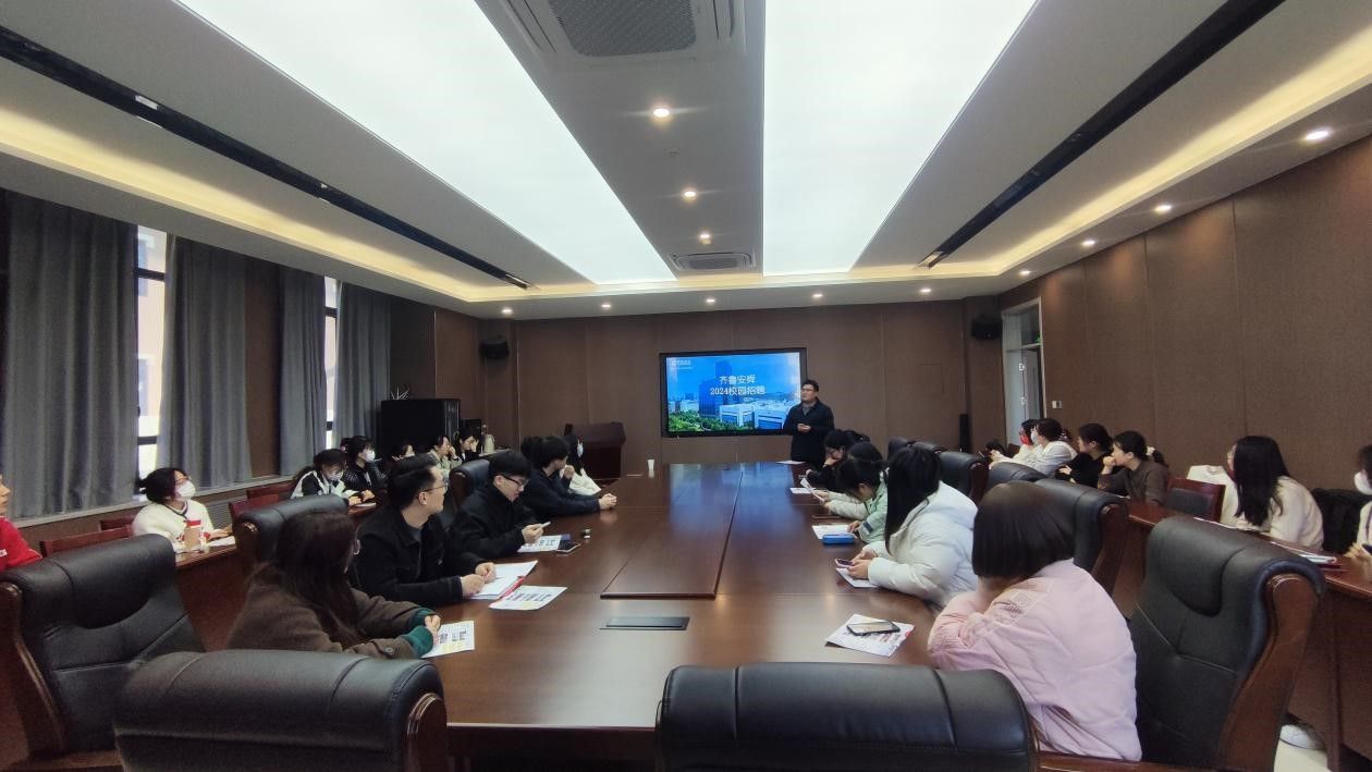 周院长介绍学院融合发展概况,2024届毕业生基本情况、就业需求等,齐鲁安舜人资马经理详细介绍公司架构、发展现状、校招需求,结合实际岗位给毕业生讲解工作职责和内容,重点宣介了企业文化、工作环境、福利待遇等,以近3年我院数名毕业生人职公司发展情况为例,诚激我院学子加入团队。