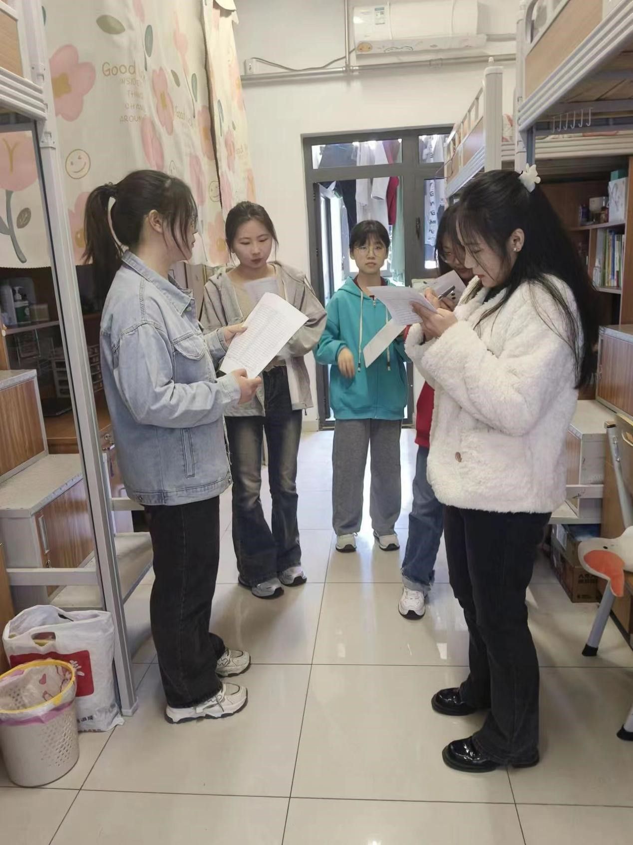评比开始前,同学们对宿舍卫生进行了全面整理,展现出了极高的热情和参与度,宿舍卫生水平明显提高,他们清理垃圾、打扫地面,认真整理个人物品,保持宿舍通风换气,力求每一个角落都做到干净整洁、符合卫生评分标准。同学们充分发挥自己的创意和想象力,对宿舍进行了装饰美化,充分利用宿舍空间,将墙面、书桌、床铺等区域进行创意设计,充分展现了当代大学生积极向上的精神风貌。