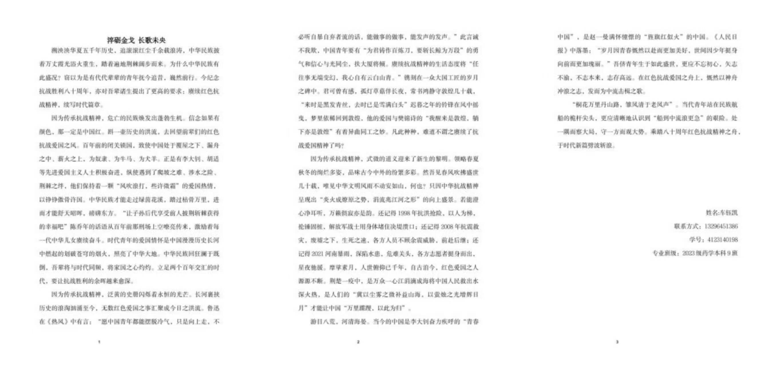 此次征文活动的举办,不仅为广大学子搭建抒发心声、交流感悟的平台,更以文字为载体传承红色精神,深化对历史的认知与铭记以多样形式厚植爱国情怀,引导更多人从抗战历史中汲取精神养分,以更昂扬姿态奋进新征程、建功新时代。