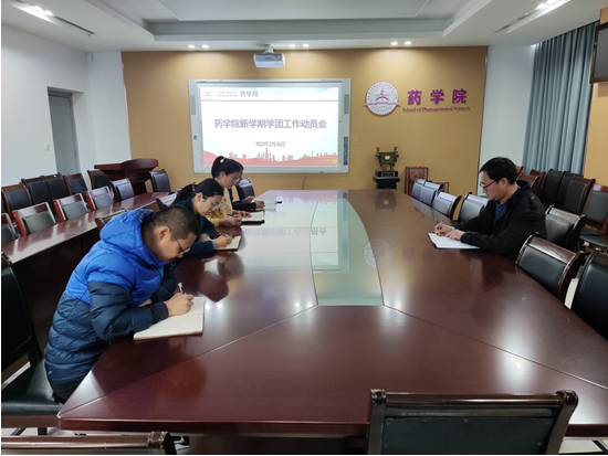 药学院被评为“2021年度学团工作优秀单位”,为总结工作经验,有效促进新学期学生工作平稳有序开展。2月26日下午,药学院在学院会议室召开新学期学团工作动员会,会议由药学院党委副书记宋洪涛主持,全体辅导员参加会议。