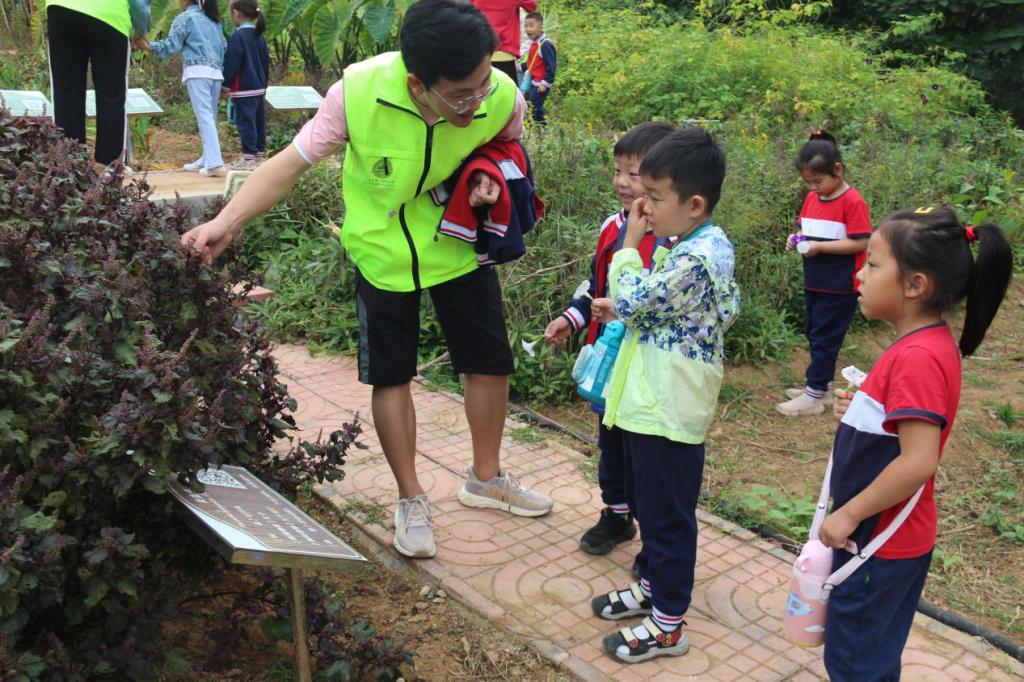 秋高气爽,药植园迎来了一批新的客人——山东第一医科大学第二附属幼儿园的小朋友们。为加深小朋友们对药用植物的了解,激发他们对中草药知识的好奇心,进一步弘扬和传承中草药文化,9月20日上午,药学院岐黄本草志愿者服务队带领第二附属幼儿园的小朋友们参观了我校丰富多彩的药用植物园。本次参观活动由药学院中药教研室主任孙立彦全程讲解,药学院副院长周延萌,党委副书记宋洪涛,中药教研室高红莉教授,办公室秘书王蕾、李洪爽,团委副书记彭曼曼、辅导员冯春苗等出席活动。