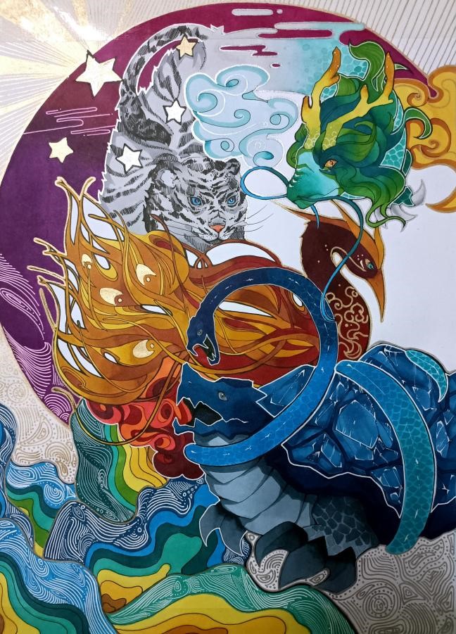 几笔勾勒似云锦,点墨绘出心中情。活动通知一经下发,药学院同学们便积极参与报名,纷纷展现对祖国母亲的真诚祝福及对未来的美好展望,赤子之心可见一斑。参赛者们紧扣“绘崭新华夏,描异彩神州”的主题,踊跃创作,无论是绘画还是书法作品,都令人耳目一新、叹为观止。绘画作品栩栩如生,出神入化;书法作品亦是鸾飘凤泊,铁画银钩,同学们将对祖国的美好期望与祝福尽数融于小小的纸笔之间。