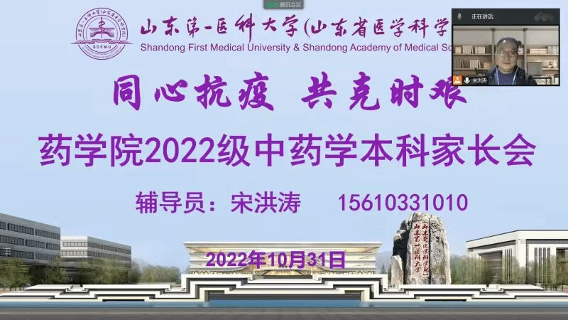 在闭环管理期间,为方便家长了解学生在校情况,更好地构建家校协同育人体系,凝心聚力打赢这场疫情防控攻坚战。近期,药学院召开2022级学生线上家长会,学院党委副书记宋洪涛和全体新生辅导员主持会议。