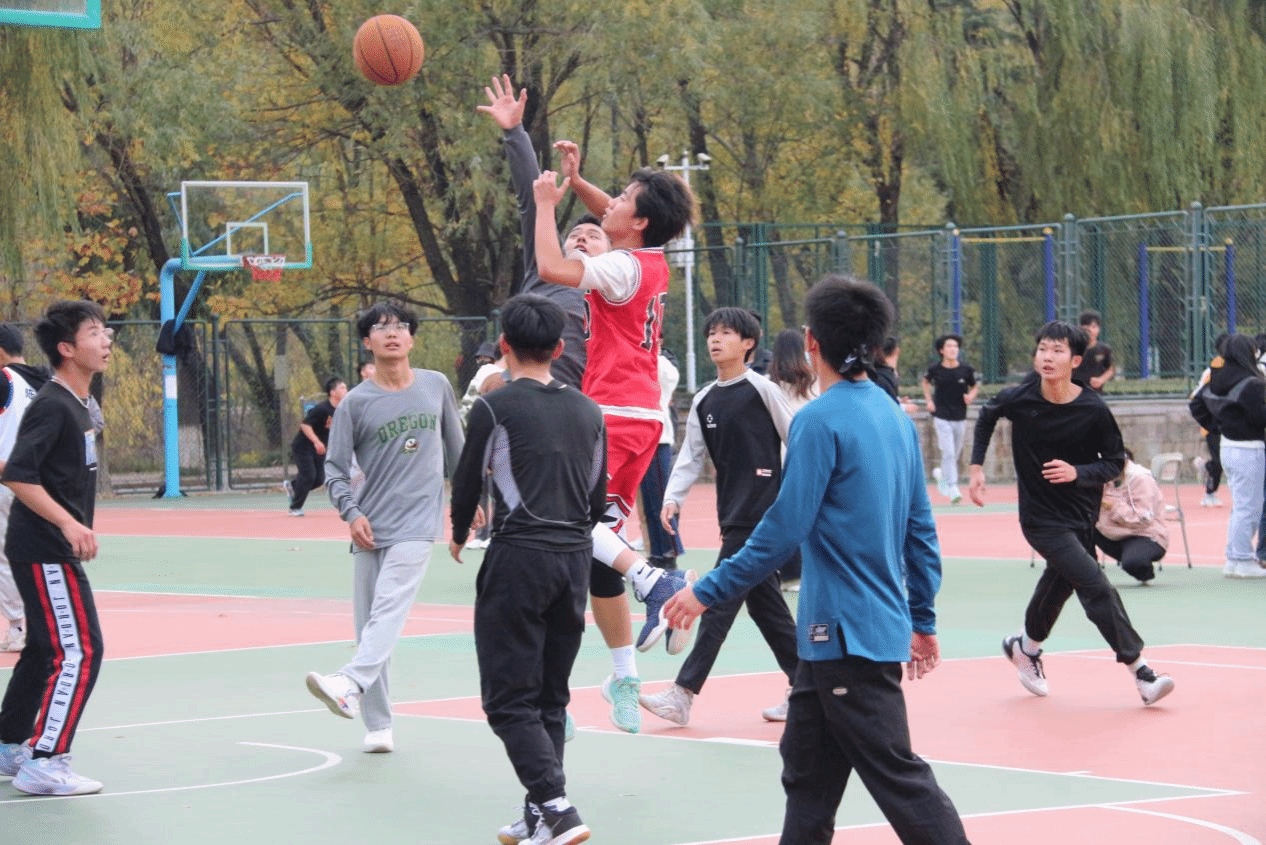 立冬刚至,时而凌冽的寒风却难挡同学们对比赛的高涨热情。随着史书记和宋书记的精彩开球,两场比赛同时开始,球员们瞬间激情澎湃,将热情的汗水挥洒在篮球场上。尽管冬风呼啸,球员们却毫不懈怠:防守眼神的坚决、进攻脚步的迅速、投球身姿的矫健,无一不彰显球员对篮球的热爱。