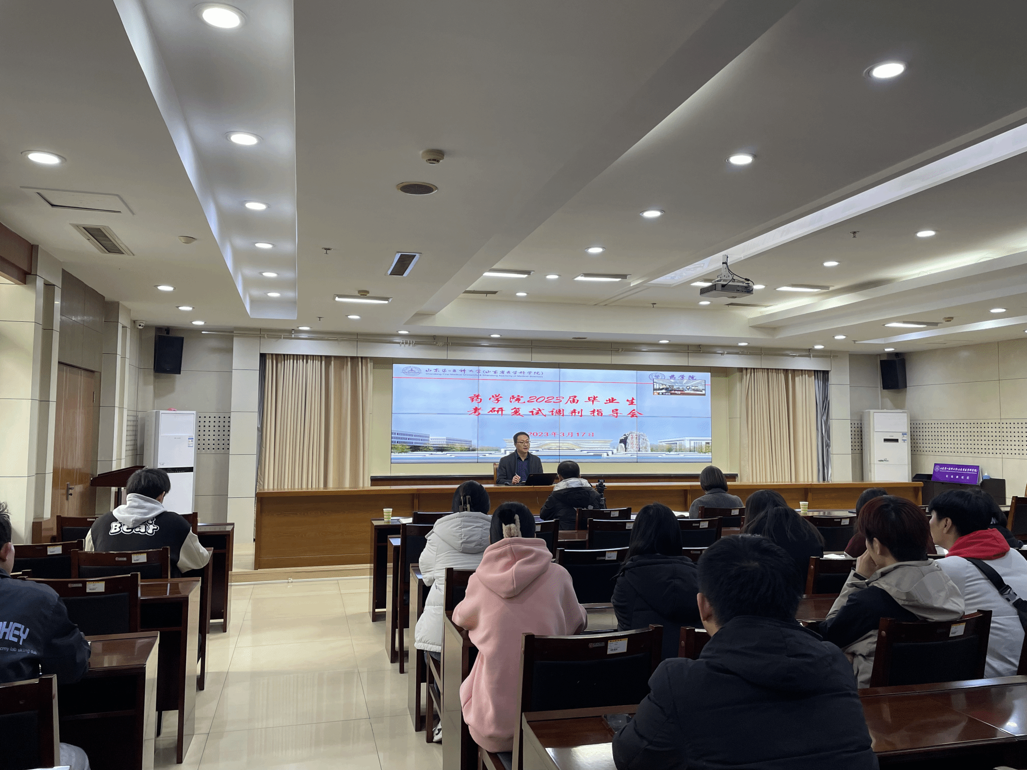 会议开始,宋洪涛向同学们介绍了药学院2023届毕业生考研情况,强调熟悉复试及调剂相关问题的重要性,引导同学们拓宽复试信息渠道、整合多方资源、积极调整心态,充分准备复试环节。