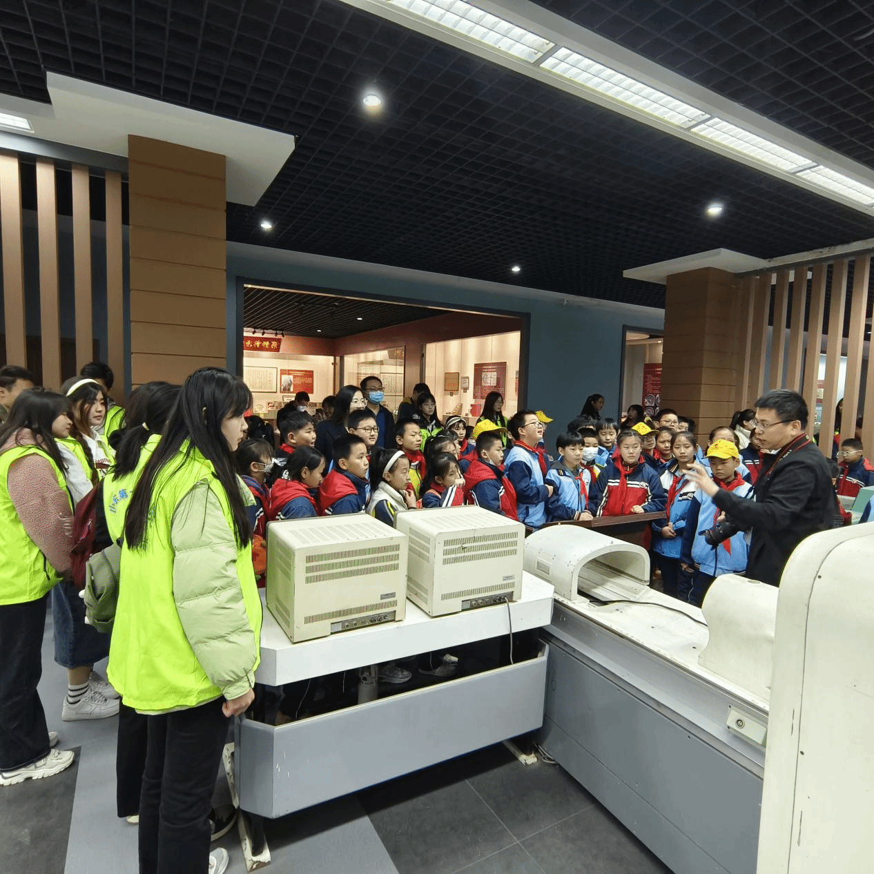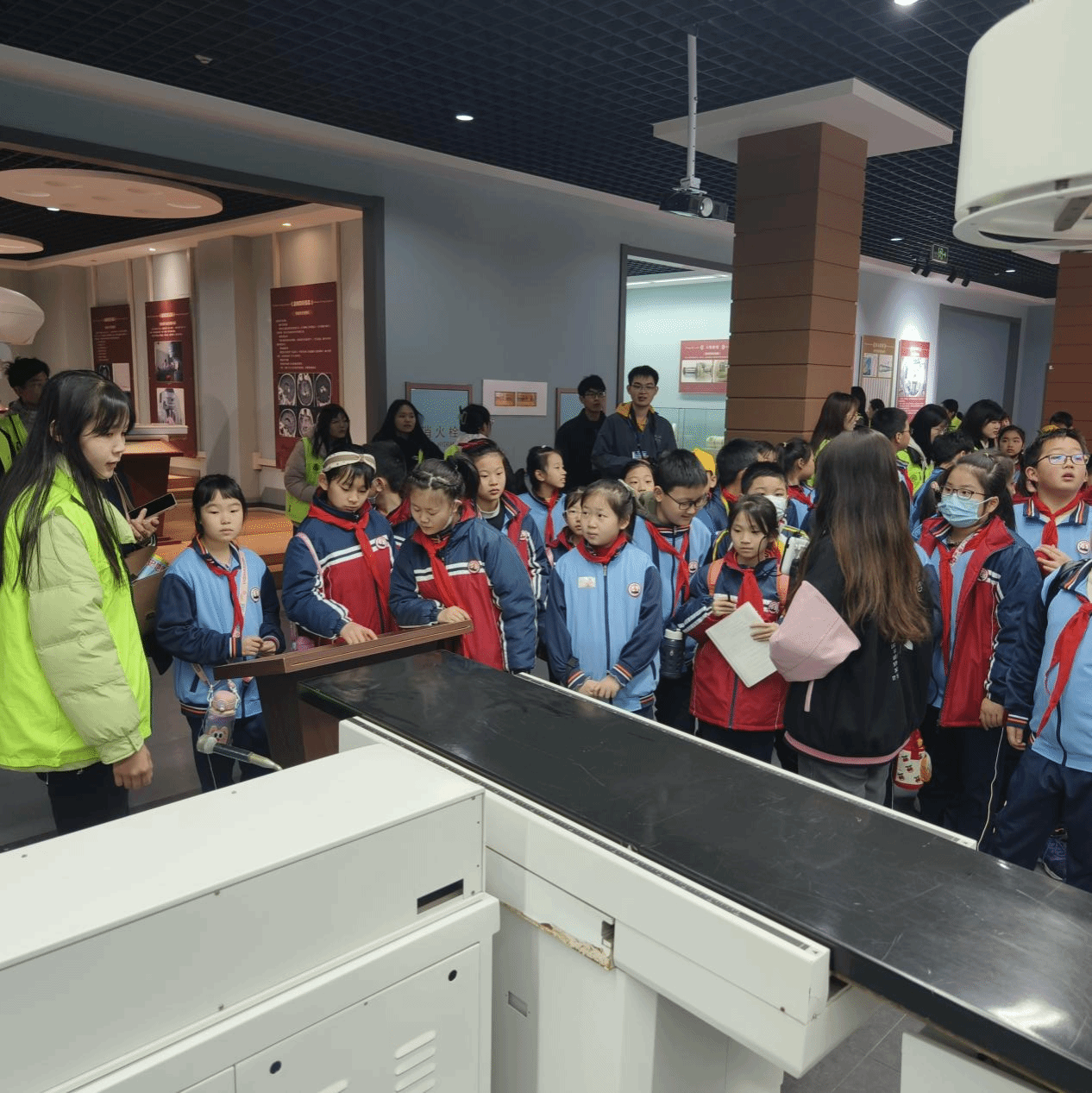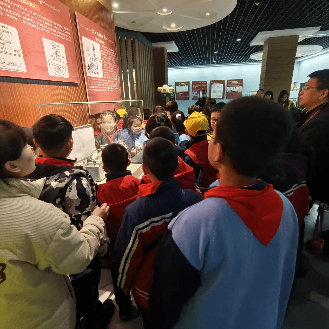 参观的第一站是医学影像博物馆,小学生们通过聆听讲解员的专业解说,了解到了这座医学影像博物馆是全国科普教育基地、全国唯一一座医学影像学领域的专业性博物馆。随后大家在讲解员和志愿者的带领下参观了博物馆内的各个展区,详细了解影像学医疗设备的发展历程,近距离观看中华人民共和国成立后各个时期的影像学设备,,尽情探索着医学影像技术的奥秘。