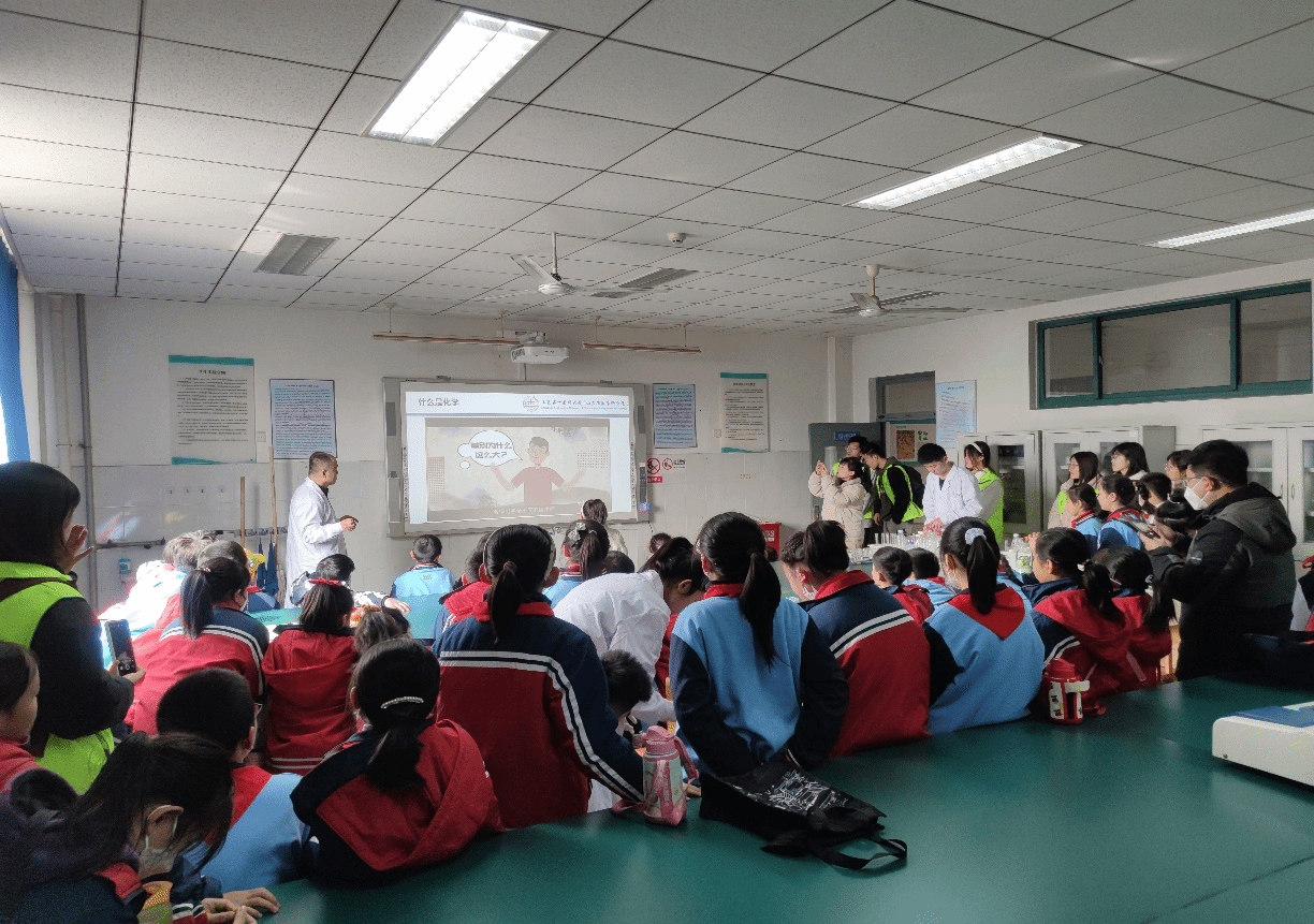 参观的最后一站是化学实验室。在进楼之前,志愿者们先向小学生们强调了实验室的注意事项,以提升小学生们的安全意识。在老师的讲解下,小朋友们学习了化学实验原理并亲自动手体验了实验的乐趣,神奇的实验现象激发了同学们对化学学习的向往,大家在科学启蒙中流连忘返。