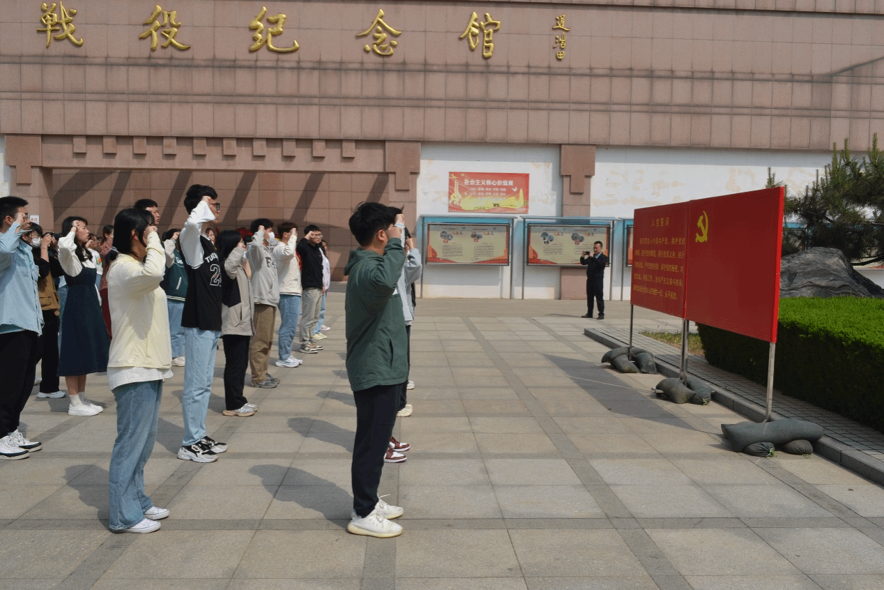 参观后,大家深有感触,备受鼓舞。在济南战役纪念馆门前,学生党员庄严的向党旗宣誓,重温入党誓词,传承红色革命精神,争做有理想、有本领、有担当的时代青年。