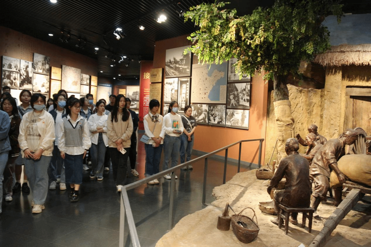 随后大家进入展厅内部,展厅分为两层,共“和战博弈齐鲁硝烟”、“运筹帷幄剑指济南”、“厉兵秣马蓄势待发”、“八天八夜鏖战古城”、“战略决战凯歌行进”、“接管济南泉城新生”“烈士忠魂日月同辉”、“新时代新泉城”八个部分。大量的抗战画作、英雄浮雕及珍贵的革命文物、历史影像陈列其间,向大家展现着那段不平凡的峥嵘岁月,诉说着先辈们艰苦卓绝、浴血奋战的英雄事迹,彰显了革命烈士永不服输、顽强拼搏的崇高精神理念。大家沉醉于绘声绘色的讲解,仿佛超越时空走进了血与火的战场,身临其境地感受到了震撼人心的抗战场景。