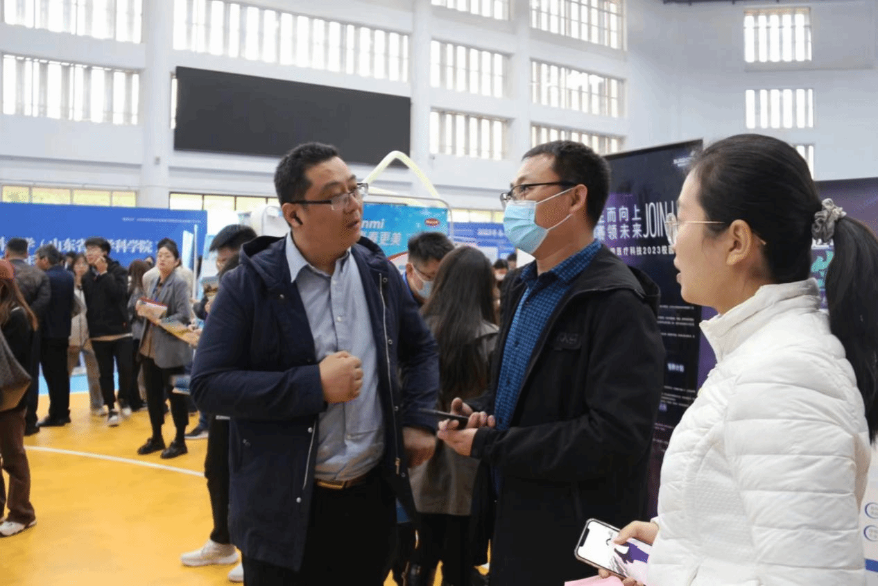 宋洪涛及辅导员在现场与参会的70余家医院和药企的招聘代表进行交流,充分了解企业的发展方向和人才需求,向用人单位介绍学院(所)2023届毕业生情况,积极推荐优秀毕业生到单位实习就业;同时与前来应聘的毕业生们亲切交谈,鼓励同学们多尝试、多交流,为自己赢得更佳的就业岗位。