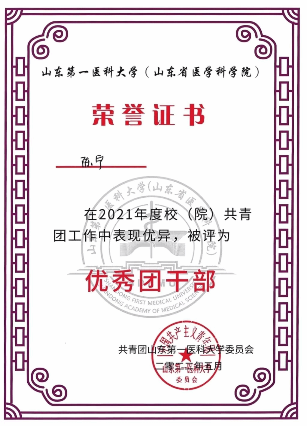 陈宁,中共预备党员,云顶集团2021级制药工程本科1班学生,担任班级团支书,青马班学员,曾获国家励志奖学金、校(院)一等奖学金、被评为校(院)优秀学生干部、优秀团干部、第十七届主持人大赛银话筒奖。
