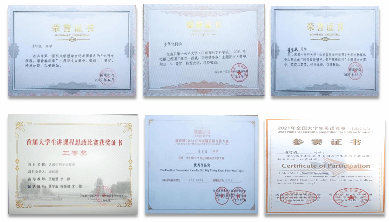 “士不可以不弘毅,任重而道远。”怀揣着对公益事业的热爱,我加入百草园研学旅游服务团队进行药学知识科普志愿宣传,担任青春健康同伴副社长宣传青春健康知识,同时以及在院学生会、校心协进行工作,积极组织各项活动服务同学们。以我所学,服务社会,每一份实践都是日日自新的体现,虽是微芒,但相信总有一天会造炬成阳。