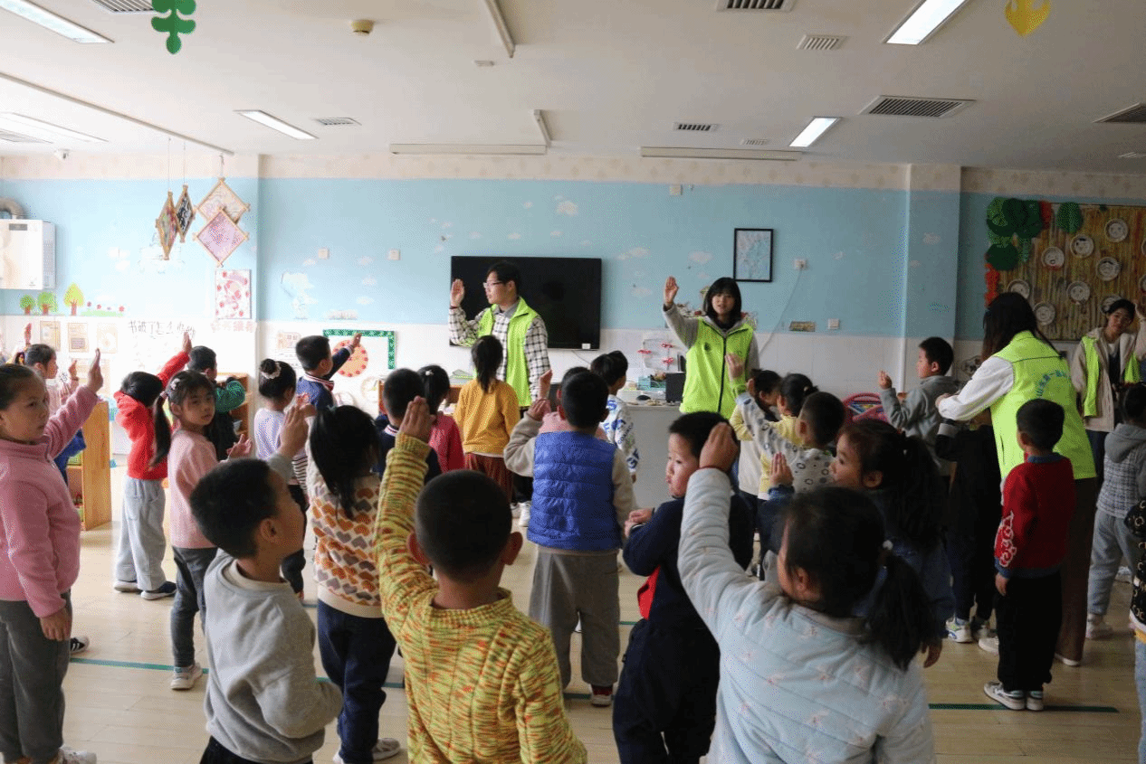 户外娱乐时间结束后,志愿者们又带领小朋友们进行《春季拍八虚》的中医保健操教学,伴随着轻快和谐的韵律,小朋友们有模有样地向志愿者们学习起来,认真拍打着身体的各处穴位,潜移默化中感受着中医药文化的独特魅力。愉快的时光总是短暂的,志愿者们与老师和小朋友们合影留念后恋恋不舍地踏上了归程。