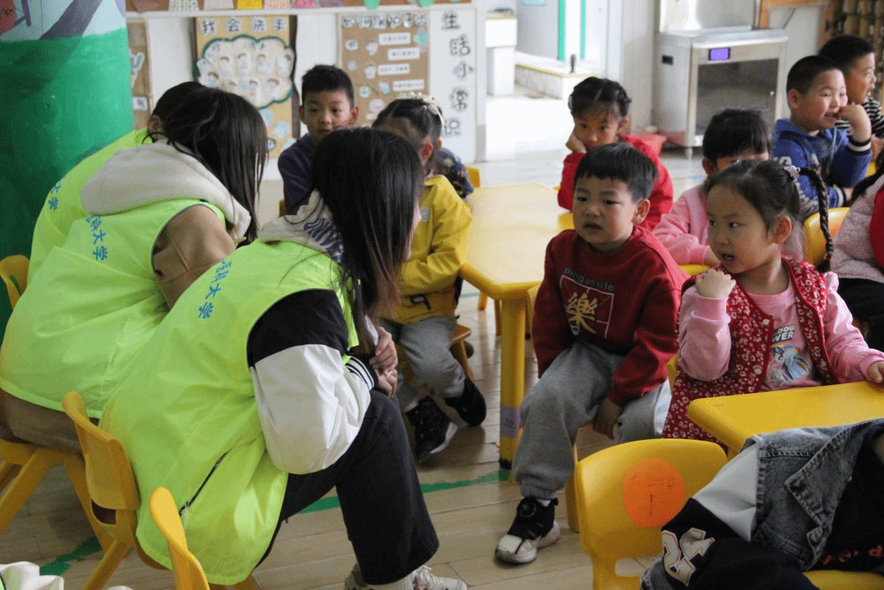 中草药课堂讲解完毕,志愿者带领小朋友们来到教室外有序地开展户外小游戏。游戏前,小朋友们先跟随志愿者哥哥姐姐进行了充分的热身准备,紧接着在志愿者的带领下,小朋友们依次开展了“粘泡泡糖”、“踩水果”、“我是小小传球手”等趣味小游戏。相处时间虽然短暂,但志愿者和小朋友们却建立起深厚的友谊,操场上到处洋溢着童真的欢声笑语。
