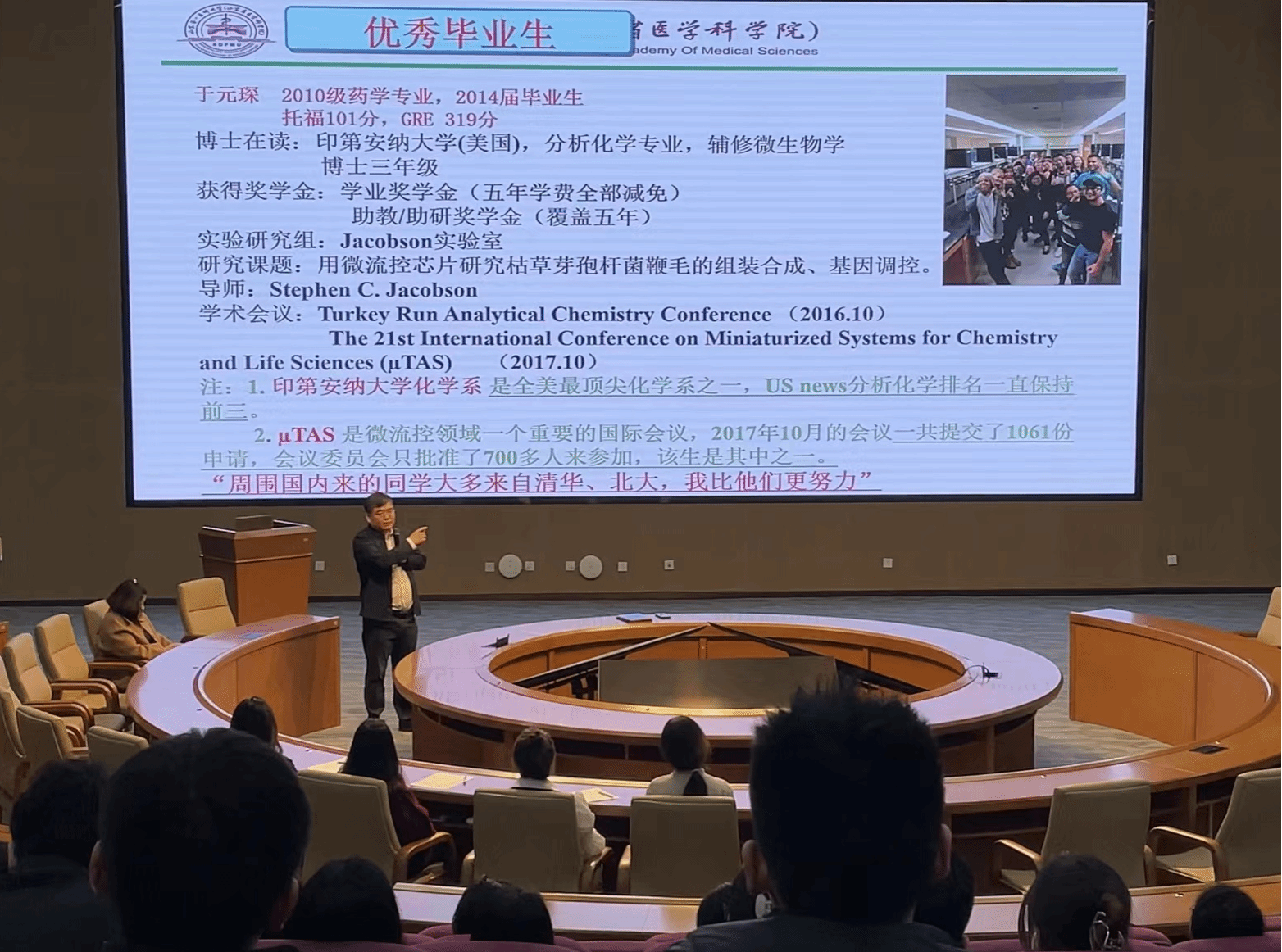 为了让2024届毕业生认清当前考研就业的严峻形势,充分利用校院优质资源,激发斗志,增强信心,做好考研准备和就业规划。4月26日晚,云顶集团在药学楼报告厅举办2023年考研就业动员交流会。院(所)党委副书记、副院长汪海洋、副院长牟艳玲、辅导员初海平及2020级全体学生参加动员会。