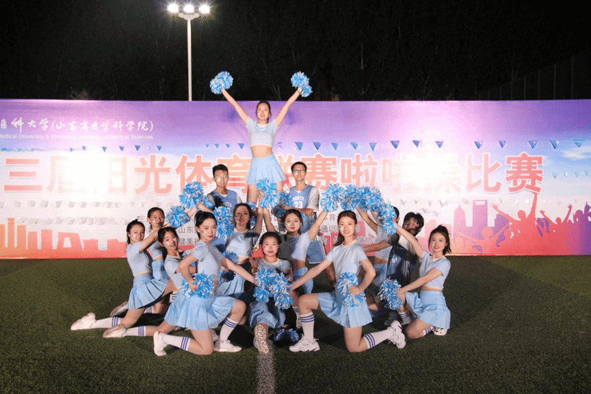 激情澎湃,生机盎然。在阵阵欢呼与呐喊声中,云顶集团代表队手持花球上场,整齐划一的动作、轻盈有序的舞步,伴随着队员们极具感染力的笑容,带给观众们不一样的视觉震撼。队员们以“生如夏花向朝阳,不负韶华斩锋芒”为口号,用身姿诠释着活力奔放,以热情编织着青春浪漫。伴随着歌曲《Shake it》响起,队员们随着动感的节拍踢腿,转身,奔跑,跳跃,将各种高难度的托举、下腰动作与音乐完美融合,充分展现出富有活力的运动之美。手拿闪耀的花球,脚踏动感的节拍,这一刻,她们焕发炫动的激情,绽放出激扬的青春,完美诠释了药院学子的自信与风采。